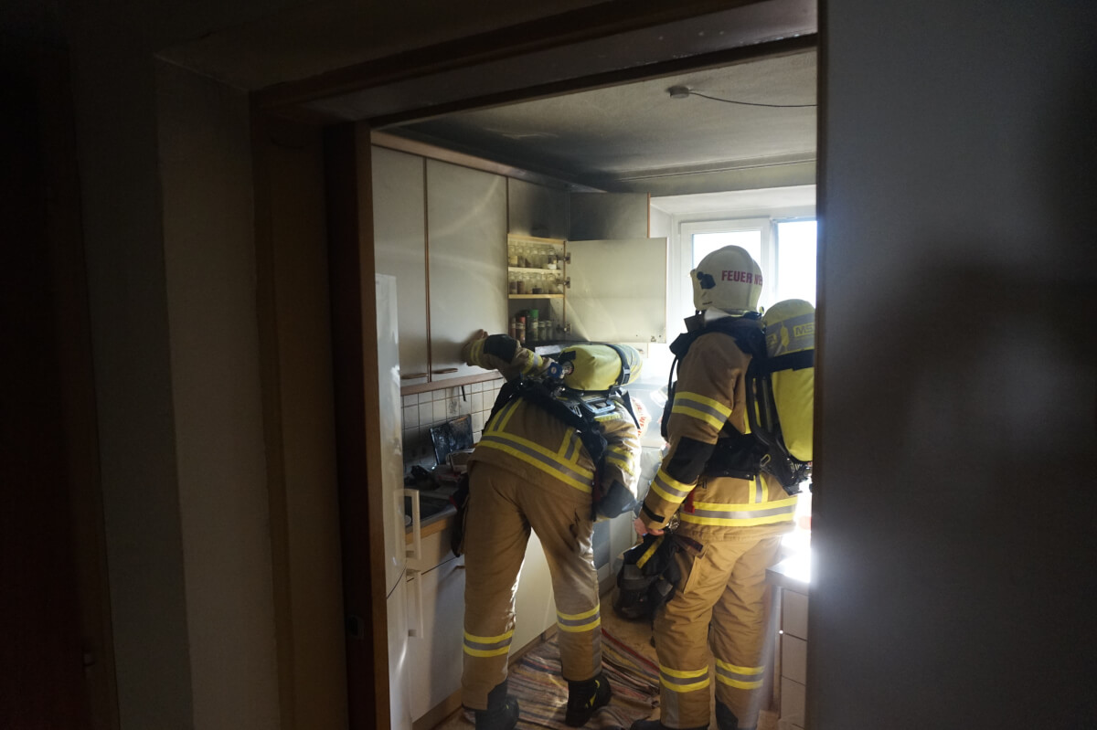 Am späten Sonntagnachmittag wurde die Feuerwehr Völs zu einem Küchenbrand in einem Mehrfamilienhaus alarmiert. Der Brand hatte sich bereits auf den Dunstabzug ausgebreitet. Gerade noch in letzter Sekunde konnte der Bewohner den Brand selbst ablöschen und damit Schlimmeres verhindern. Unter schwerem Atemschutz und mittels einer Wärmebildkamera wurde die Küche auf verbleibende Glutnester kontrolliert. Im Anschluss wurde die stark verrauchte Wohnung mittels Überdruckbelüftung rauchfrei gemacht. Der Bewohner wurde in der Zwischenzeit von dem Rettungsdienst erstversorgt.