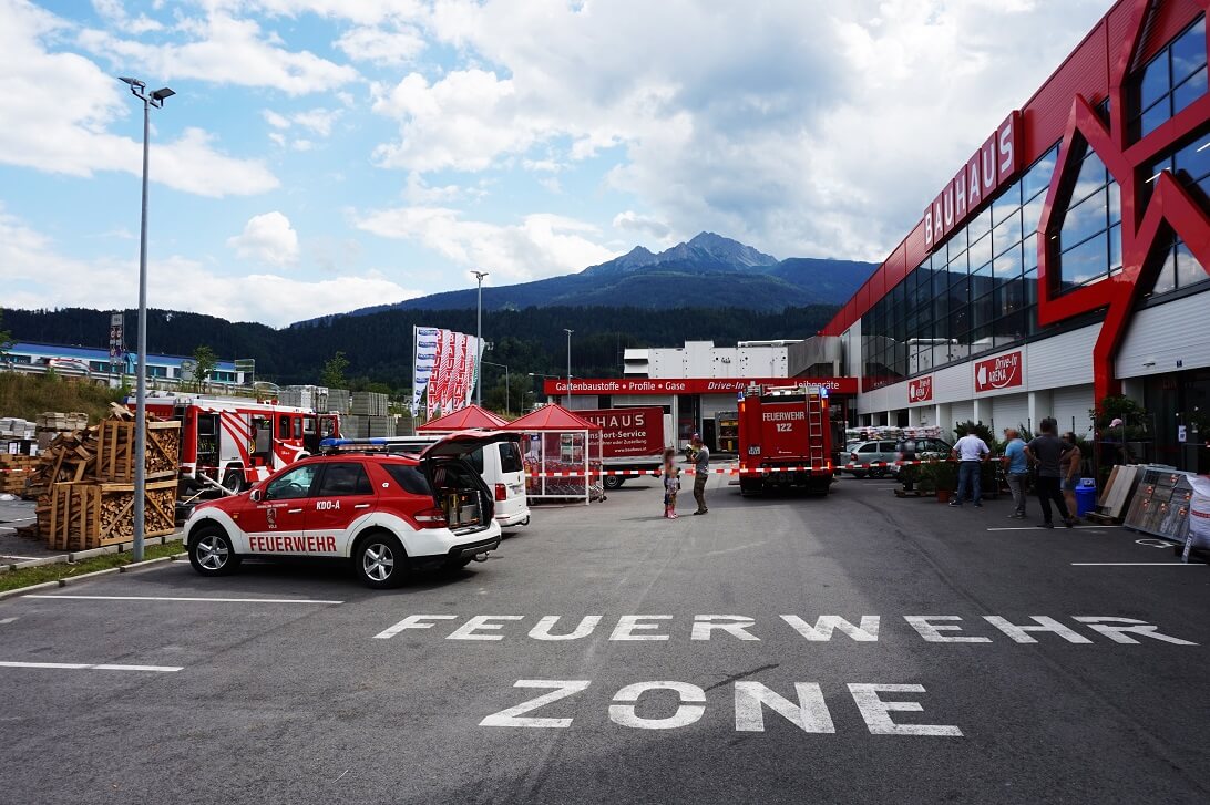 Samstag Nachmittag wurde die Feuerwehr Völs zu einem Gasaustritt alarmiert. Das gesamte Areal wurde großräumig abgesperrt. Eine 11kg Propangasflasche war aus noch unbekannter Ursache undicht geworden. Unter Atemschutz und mit einem speziellen Gasmessgerät wurde das Gaslager nach der undichten Flasche abgesucht. Zeitgleich wurde ein Brandschutz aufgebaut sowie mit der Belüftung begonnen. Die beschädigte Falsche wurde ins Freie gebracht und dort kontrolliert entleert.