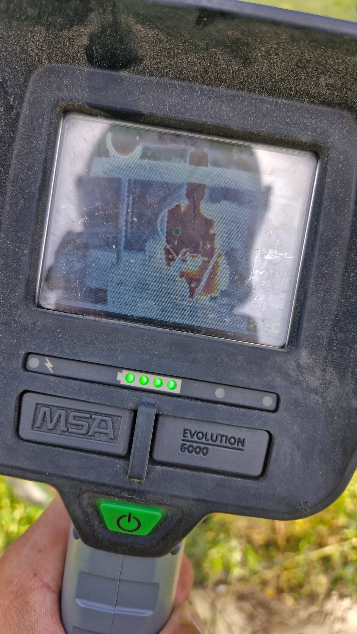 Eine dieselbetriebene Wasserpumpe rauchte stark und musste von uns gekühlt werden. Mithilfe eines HD-Rohres wurde die Pumpe gekühlt und fortlaufend mit einer Wärmebildkamera überprüft.