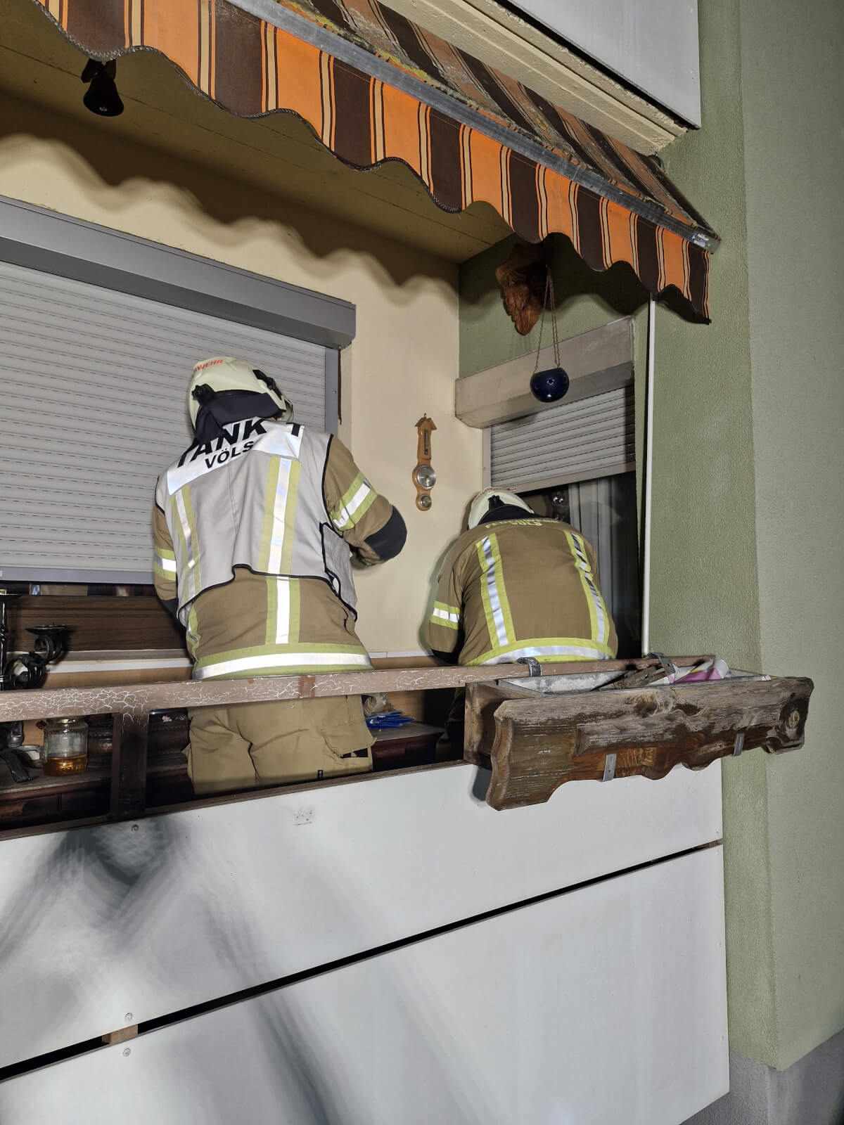 Der Rettungsdienst war bereits vor Ort und hatte uns zur Wohnungsöffnung nachalarmiert. Wir verschafften uns mittels Fensterbohrer über den Balkon Zutritt zur Wohnung.