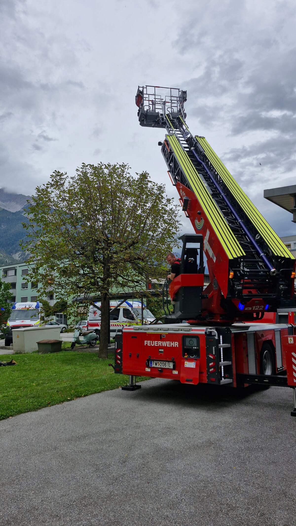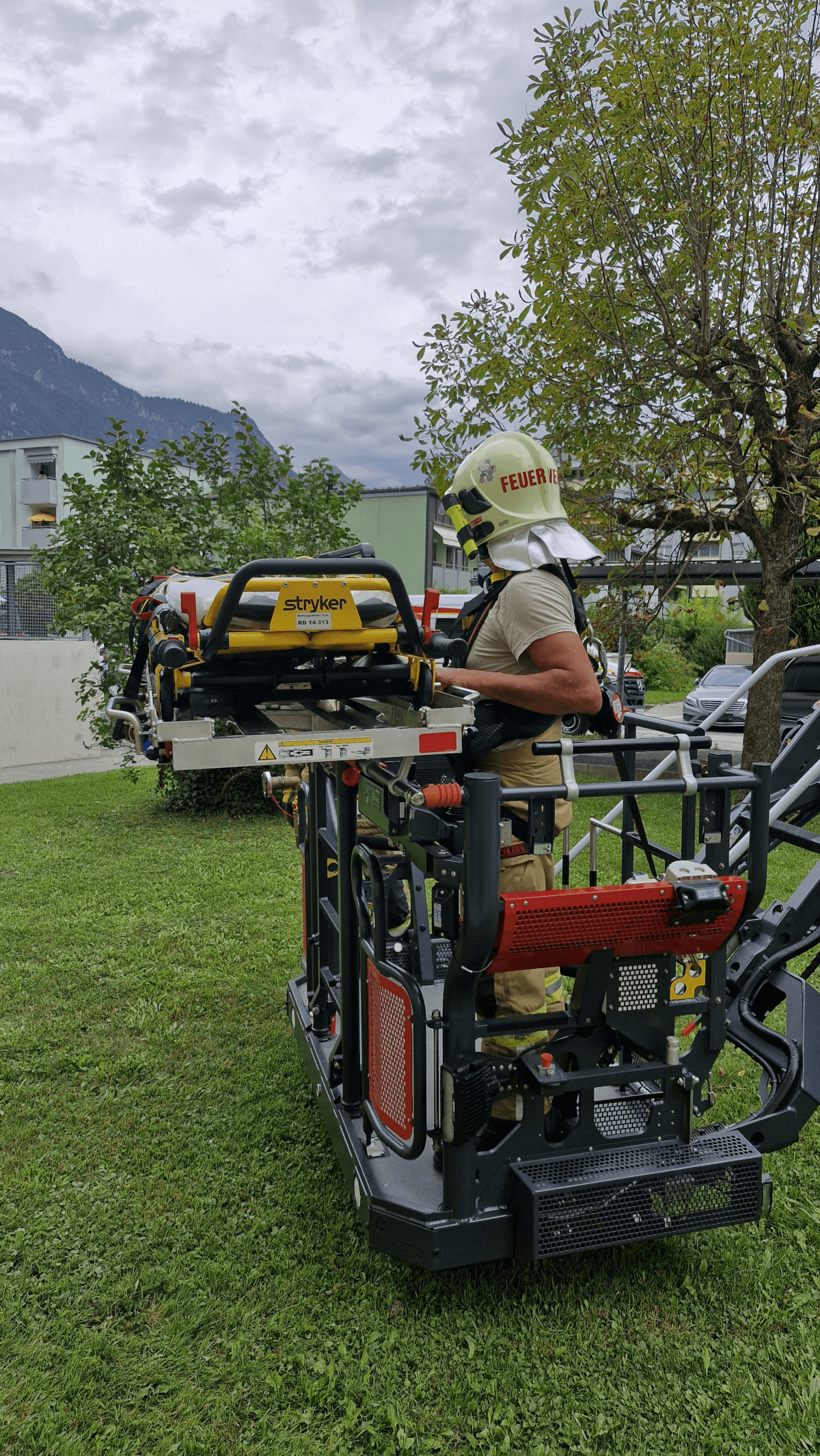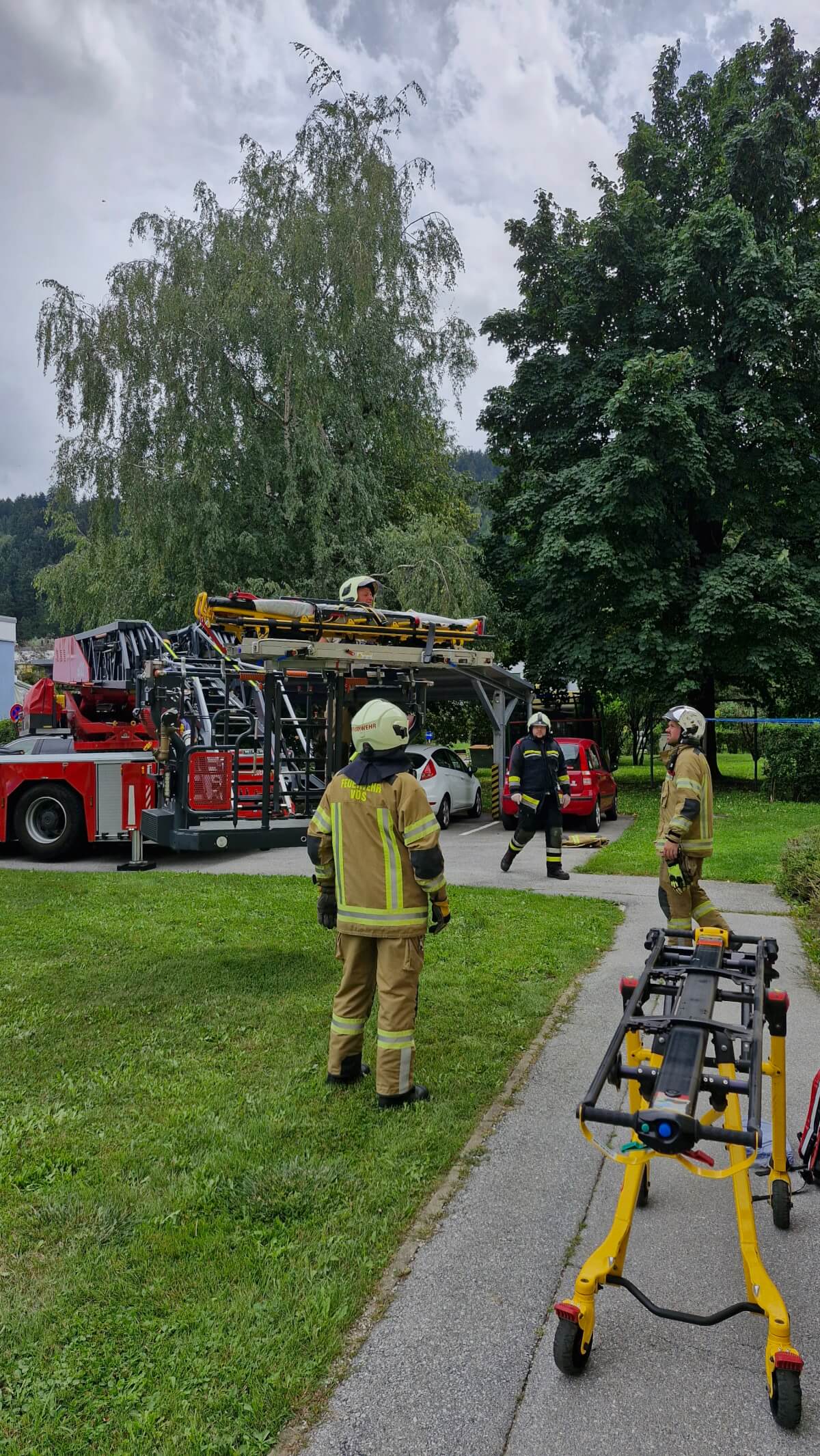 Unsere Aufgabe bestand darin, eine Person, die medizinische Hilfe benötigte, mithilfe der Drehleiter aus einer Wohnung zu transportieren.