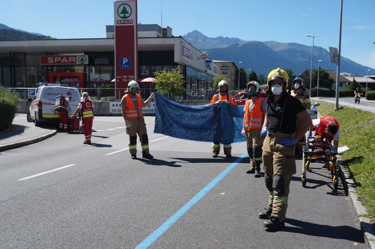 Zum zweiten Mal an diesem Tag wurde die Feuerwehr Völs alarmiert. Diesmal wurde die Feuerwehr von der Rettung zur Unterstützung gerufen. Eine Person musste mittels Drehleiter aus dem vierten Stock gerettet werden.