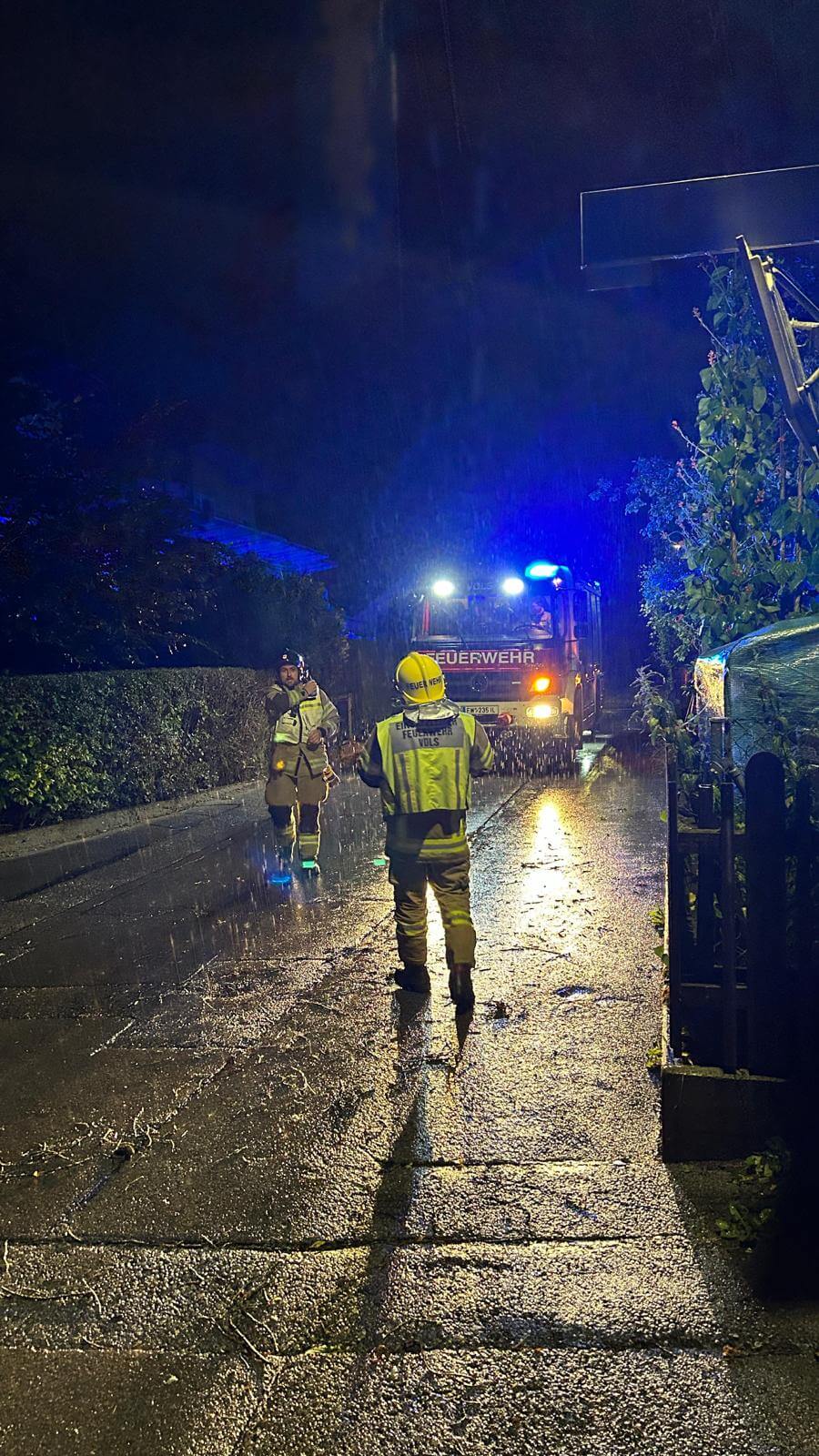 Einsatz 2 23:17 Uhr: Ein Aufstellpool in der Kranebitter Straße wurde durch das Unwetter beschädigt, weshalb der Pool mit 32 Tausend Litern Wasser kontrolliert abgelassen wurde.