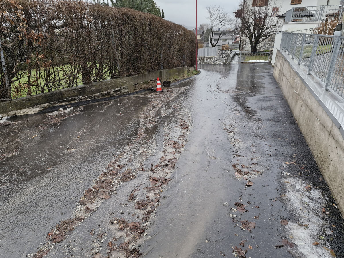 Von einem Hang, dessen Boden noch gefroren war, konnte der Regen nicht absickern und floss direkt auf ein Wohnhaus zu.