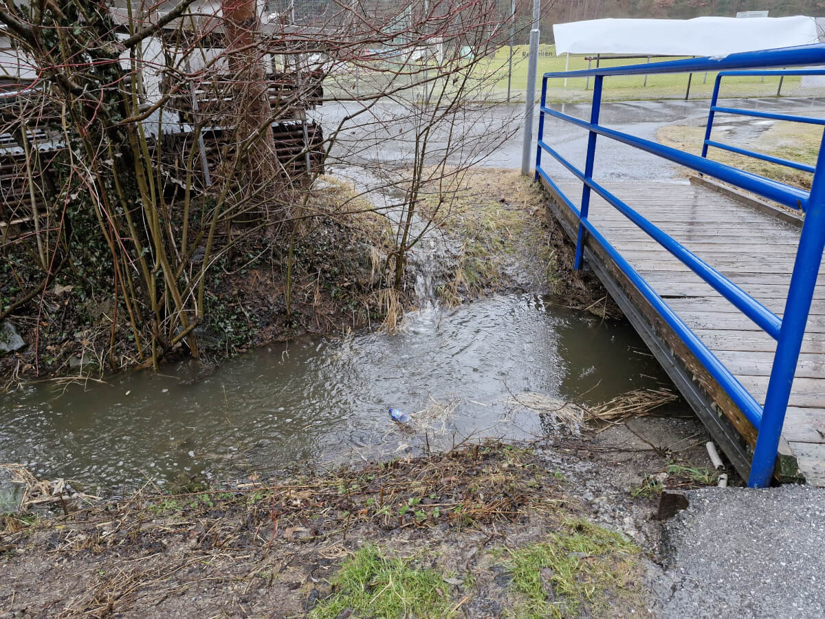 Regenwasser hatte sich im „Seebach“ angesammelt und gefährlich hoch angestaut.