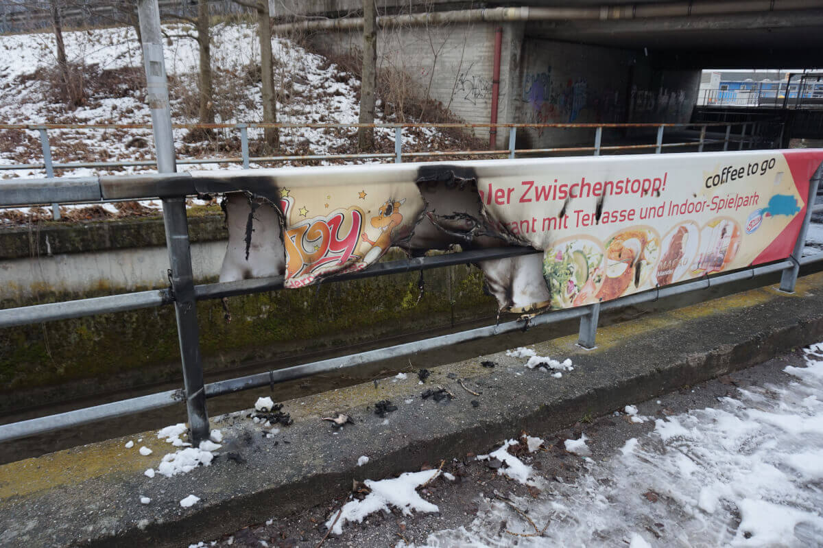 Am späten Dienstag Nachmittag meldete ein aufmerksamer Bürger, der auf der Autobahn fuhr, dass er ein brennendes Plakat in der Nähe vom "JOY Kinderparadies" sehe. Beim Eintreffen der Feuerwehr ist dies bereits wegen der Materialbeschaffenheit von selber ausgegangen. Die Einsatzstelle wurde an die Exekutive übergeben.