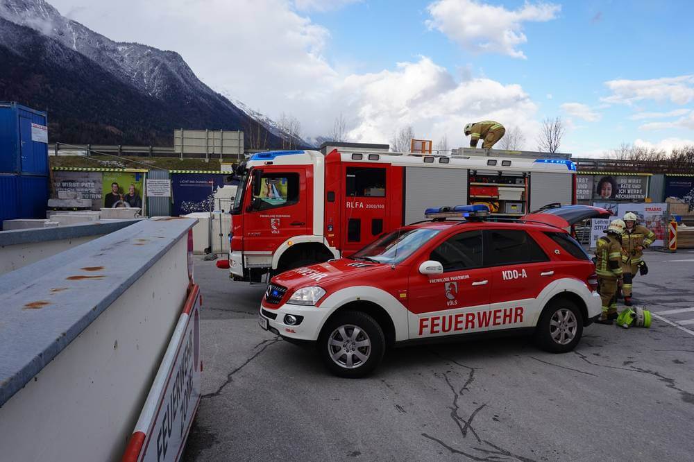 Im Baustellenbereich wurde mit einem Stappler ein Sprinkler angefahren, dieser verursachte einen Wasserschaden. Mit Wassersaugern könnte die Halle getrocknet werden und die Feuerwehr Völs wieder einrücken.