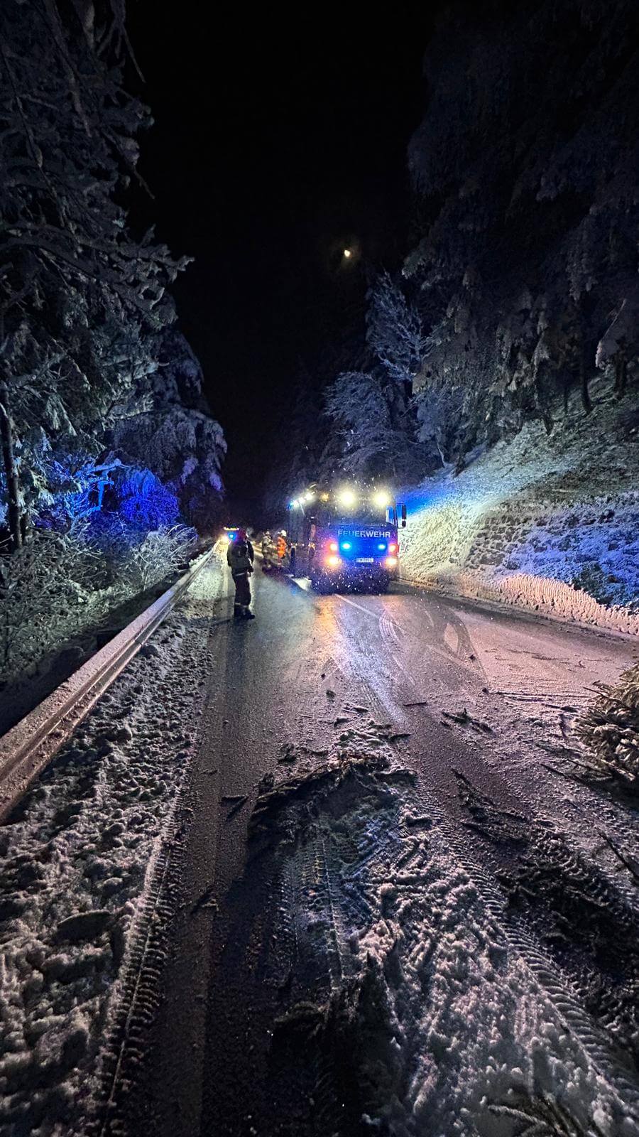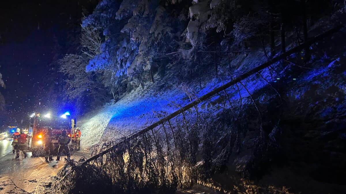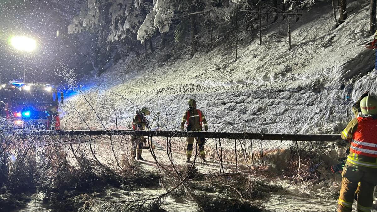 Ein Anrufer hatte gemeldet das ein umgefallener Baum auf der Götzner Straße die Fahrbahn blockiert. Bei eintreffen der Feuerwehr konnte festgestellt werden das ein Baum welcher der Schneelast nicht mehr Standgehalten hat umgestürzt war und die gesamte Fahrbahn blockiert hatte.
