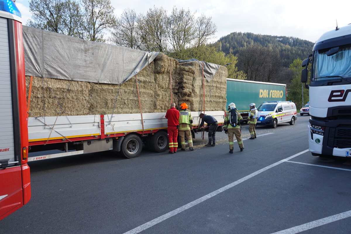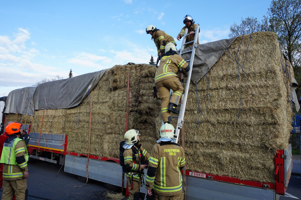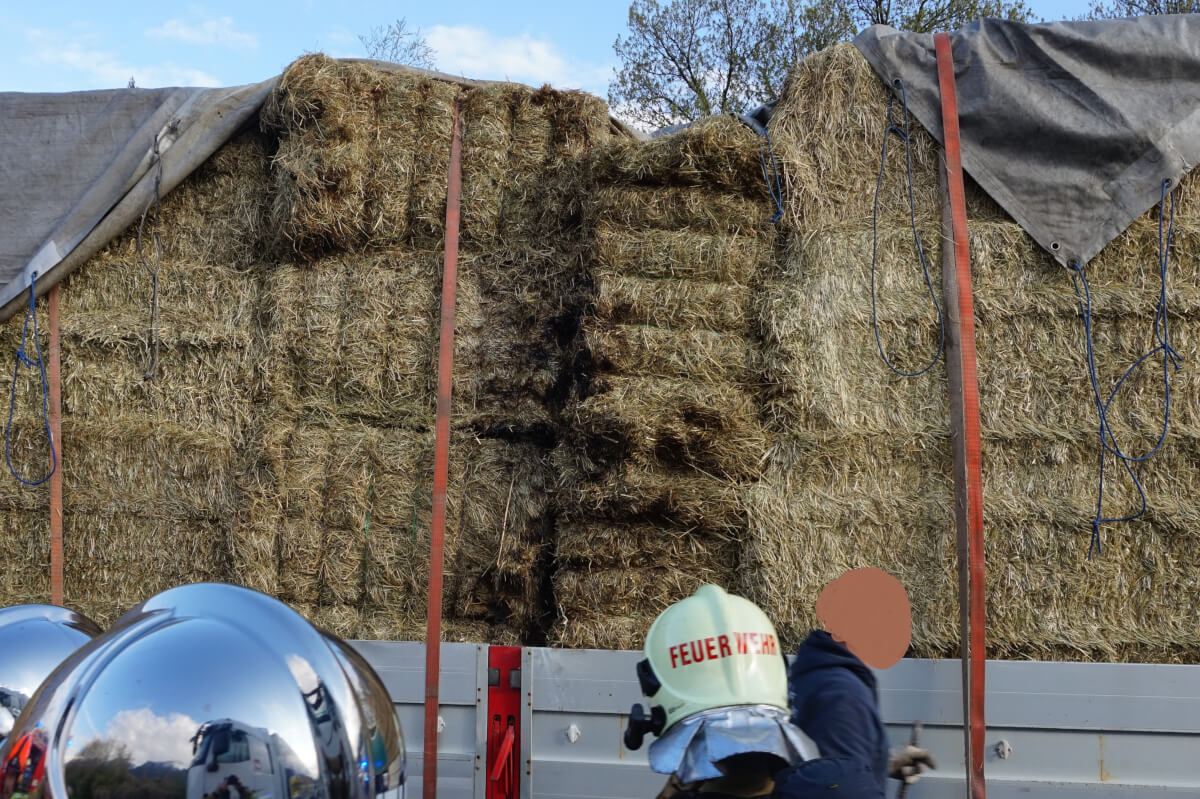 Am Dienstagabend wurde die Feuerwehr zu einem vermeintlichen LKW Brand auf der Autobahn alarmiert. Beim Eintreffen der Einsatzkräfte wurde der kleine Brand bereits vom Fahrer des LKW's mittels einem Pulverlöscher abgelöscht. Aufgabe der Feuerwehr bestand darin, die Ladung mit der Wärmebildkamera auf verbleibende Glutnester zu kontrollieren und diese zu beseitigen. Auslösegrund ist vermutlich eine von einem Auto herausgeworfene Zigarette, die sich im Heu verfing.