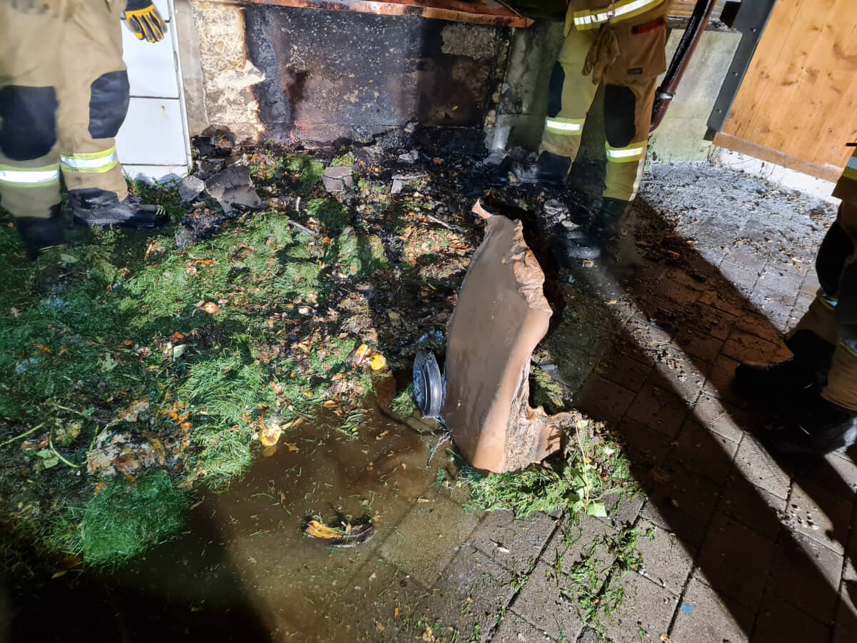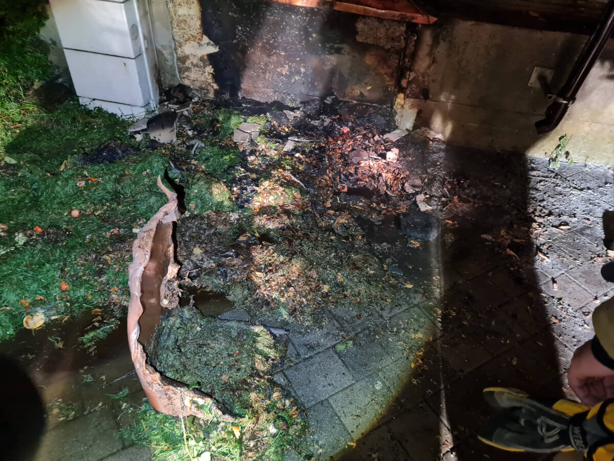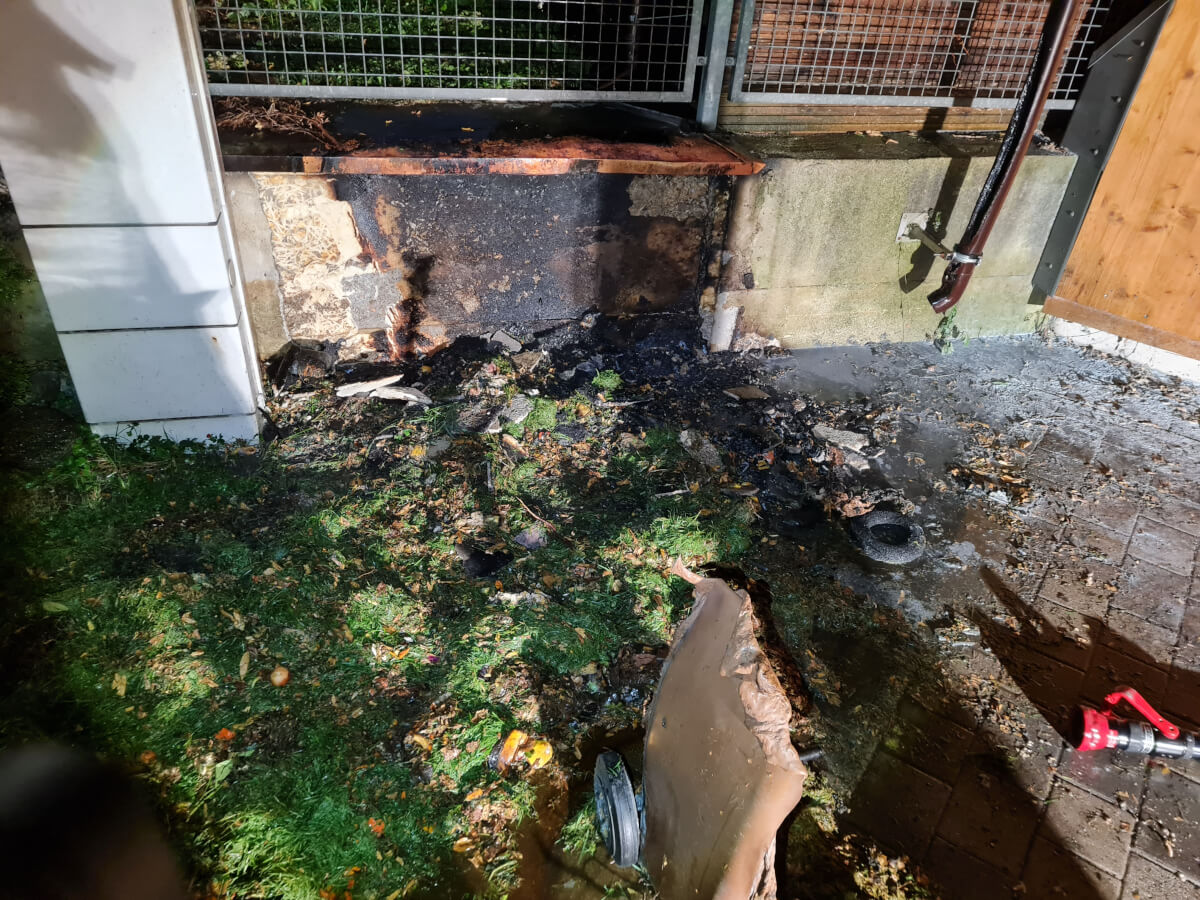 Die Bewohner des Gebäudes konnten eine Ausbreitung verhindern, indem diese selbst mit einem Feuerlöscher und einem Gartenschlauch den Brand eindämmen konnten.