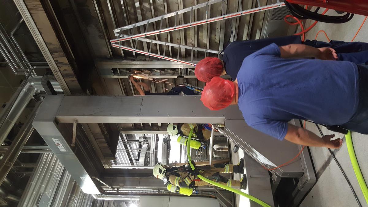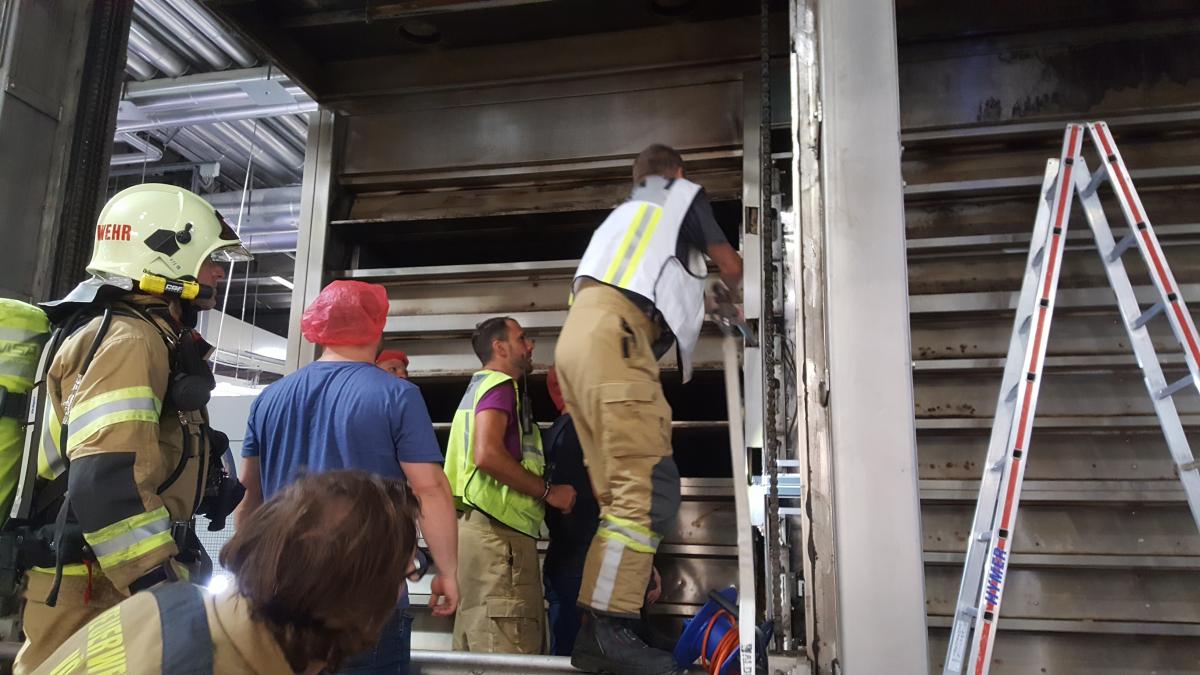 Am Montagnachmittag wurde die Feuerwehr Völs von einem Gewerbebetrieb zu einem vermeintlichen Gebäudebrand alarmiert. Bereits auf Anfahrt konnte vonseiten des Betriebes mitgeteilt werden, dass es sich um einen Glimmbrand im Inneren eines Backofens handelt. Aufgrund des versteckten Brandherdes im Inneren des Ofens wurde unter Vorbereitung des Atemschutzes und Aufbau einer Löschleitung vonseiten der betrieblichen Mitarbeiter die Verkleidung geöffnet. Aufgrund der unklaren Brandsituation wurden von der Berufsfeuerwehr Innsbruck sogenannte "Fognails" angefordert, um das mit Thermoöl getränkte Dämmmaterial zu kühlen bzw. weitere Glutnester abzulöschen.