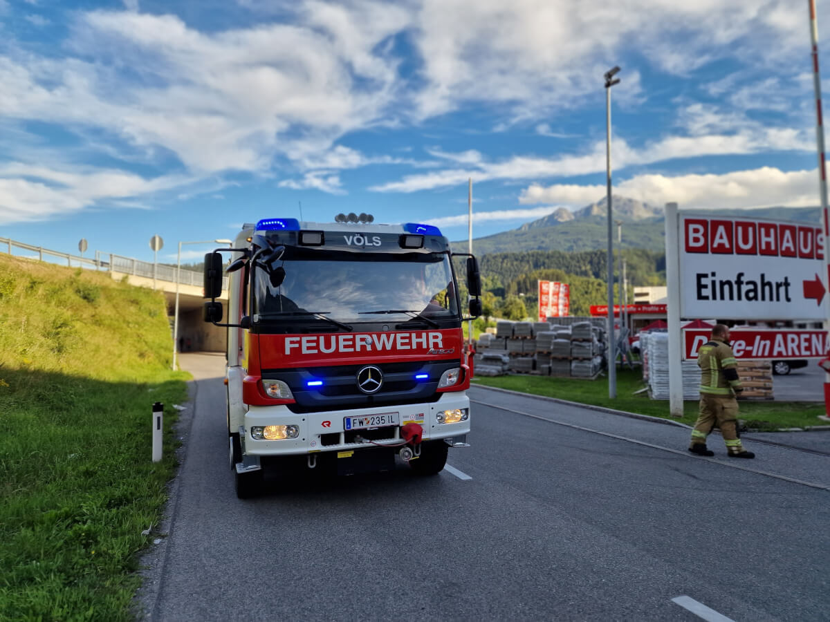 Während die FFV noch beim Verkehrsunfall auf der Götzner Landesstraße im Einsatz stand, wurde die FFV zu einem weiteren Einsatz ins Bauhaus alarmiert. Hier löste Zigarettenrauch die automatische Brandmeldeanlage aus.