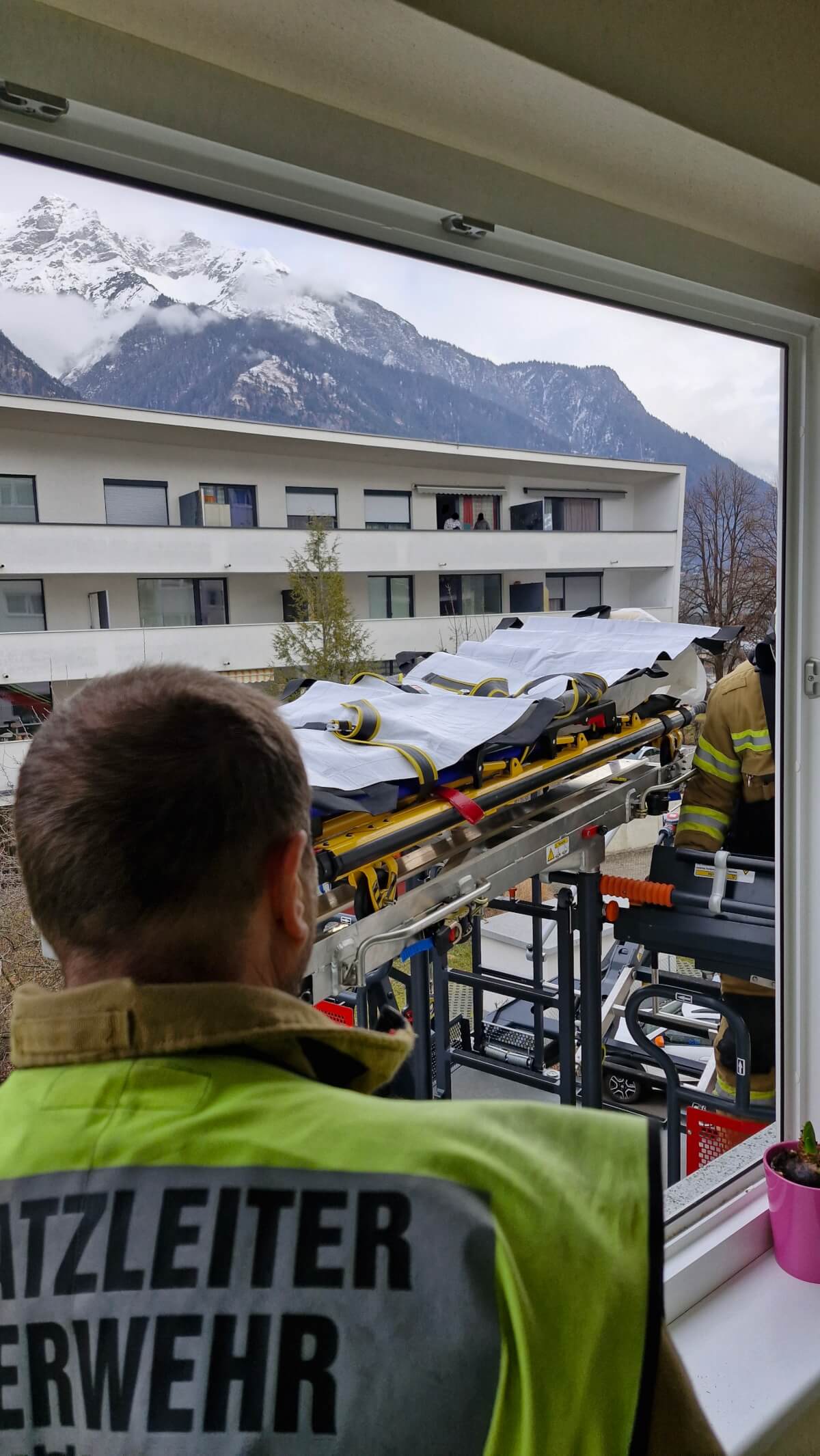 Vorsorglich wurden wir zur Unterstützung des Rettungsdienstes alarmiert, da davon ausgegangen werden musste, dass ein Patient mittels Drehleiter abtransportiert werden muss.