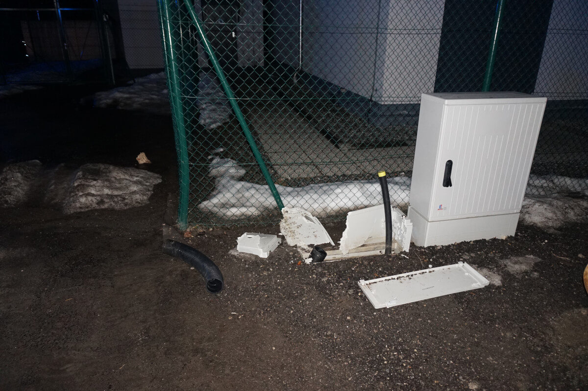 In der Nacht von Donnerstag auf Freitag wurde die Feuerwehr Völs zu einer vermeintlichen Explosion in der TIGAS Druckreduzierstation im Bereich der Landesstraße alarmiert. Nach Erkundung durch den Einsatzleiter und Kontrolle mittels Wärmebildkamera konnte lediglich ein Schaden an einem Stromverteilerkasten festgestellt werden. Der Bereich wurde zusätzlich noch mit einem TIGAS Techniker kontrolliert. Die Einsatzstelle wurde der Polizei übergeben und die Feuerwehr rückte wieder in das Gerätehaus ein.