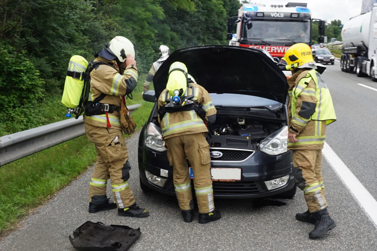 Freitag Mittag wurde die Feuerwehr Völs zu einem Fahrzeugbrand auf die A12 Inntalautobahn in Fahrtrichtung Kufstein alarmiert. Aufgrund eines technischen Defekts rauchte das Fahrzeug aus dem Motorraum. Der Fahrer bemerkte dies rechtzeitig, brachte das Fahrzeug am Pannenstreifen zum stillstand und alarmierte die Einsatzkräfte. Das Fahrzeug wurde mittels C-Rohr gekühlt und mit Wärmebildkamera kontrolliert. Auslaufende Betriebsmittel wurden ebenfalls gebunden.