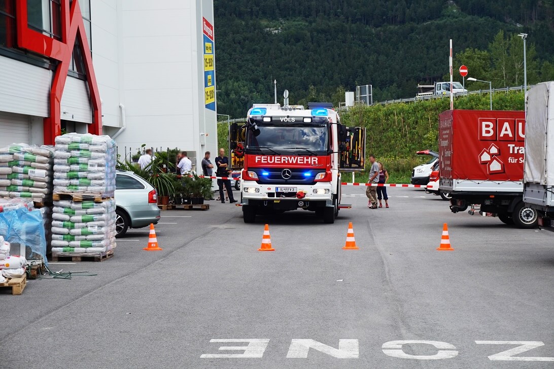 Samstag Nachmittag wurde die Feuerwehr Völs zu einem Gasaustritt alarmiert. Das gesamte Areal wurde großräumig abgesperrt. Eine 11kg Propangasflasche war aus noch unbekannter Ursache undicht geworden. Unter Atemschutz und mit einem speziellen Gasmessgerät wurde das Gaslager nach der undichten Flasche abgesucht. Zeitgleich wurde ein Brandschutz aufgebaut sowie mit der Belüftung begonnen. Die beschädigte Falsche wurde ins Freie gebracht und dort kontrolliert entleert.