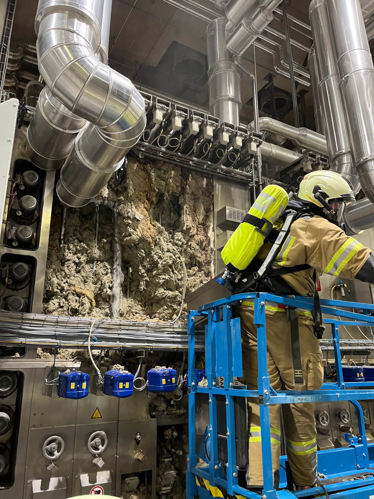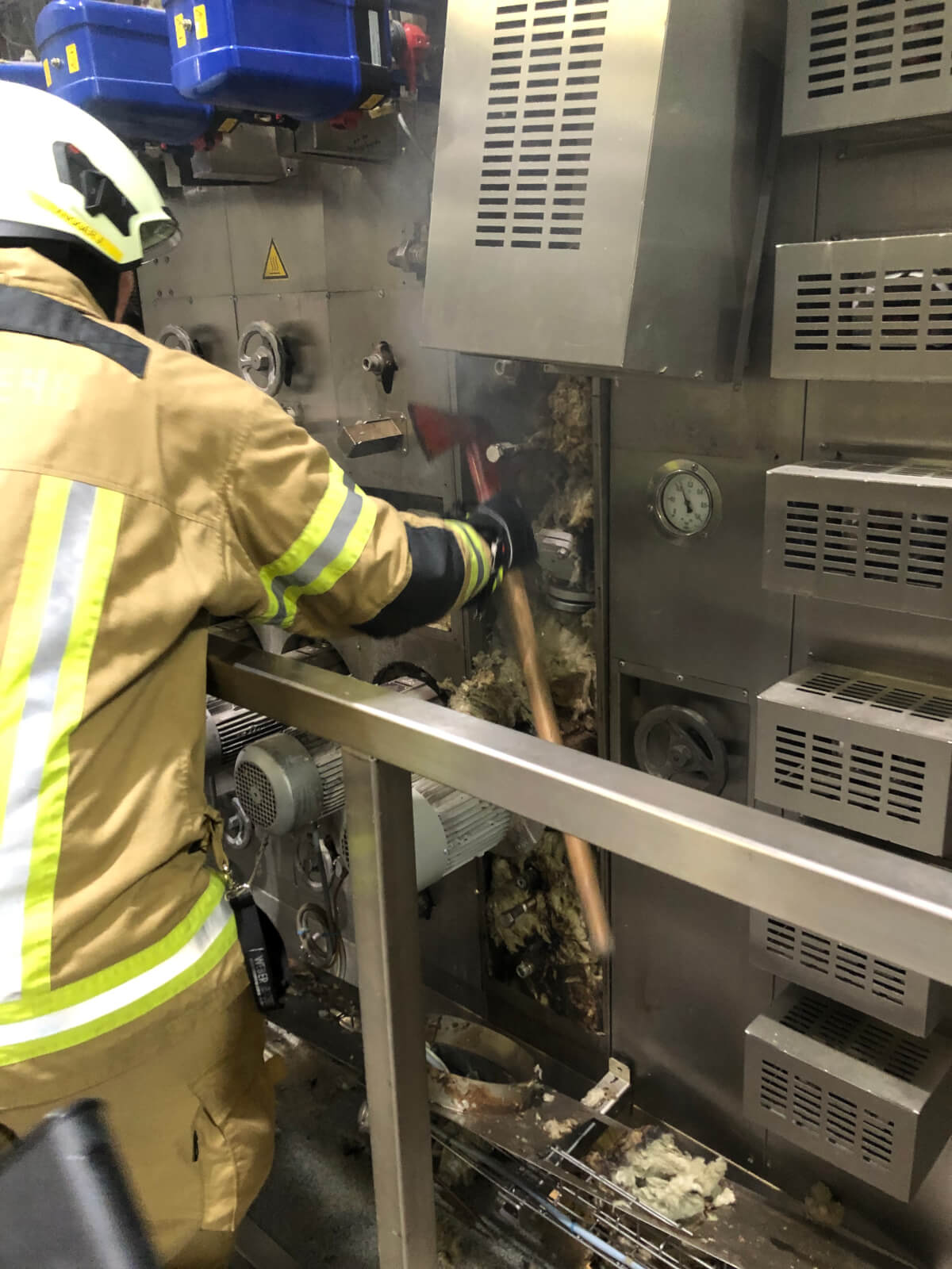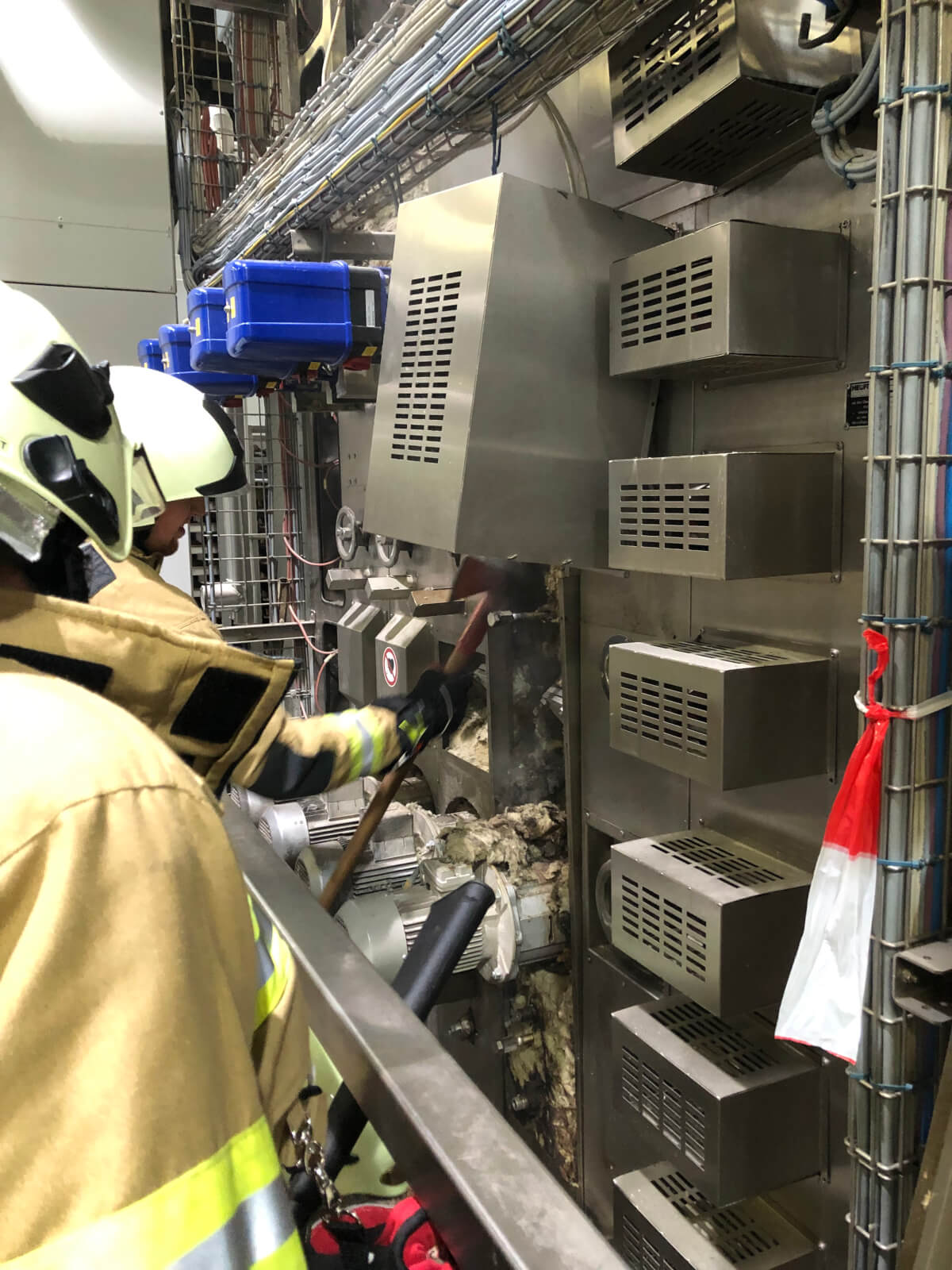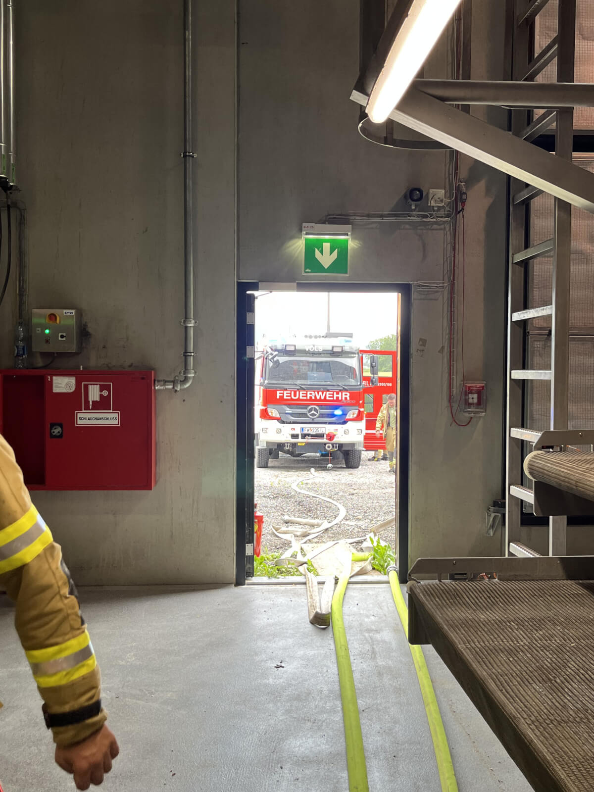 Im Rahmen des Brandmeldealarmes beim Altersheim wurde die Feuerwehr Völs telefonisch verständigt, dass es im Bereich eines Produktionsbetriebes in Völs aufgrund von Schweißarbeiten zu einer Glimmbrandentwicklung gekommen ist. Somit handelte es sich um einen Folgeeinsatz ohne Zusatzalarmierung. Bei Eintreffen des Einsatzleiters konnte nach Erkundung mit den Technikern vor Ort festgestellt werden, dass es bei einem Thermoölofen hinter diversen Verkleidungen zu einer Glimmbrandentwicklung gekommen ist. Die Aufgabe der Feuerwehr bestand darin, in Zusammenarbeit mit den Technikern die Verkleidungen zu demontieren und die glimmende Dämmwolle zu entfernen. Diese Arbeiten wurden von der Feuerwehr Völs mittels schweren Atemschutz unter Anwendung von Schanzwerkzeug und des Speziallöschmittels F500 durchgeführt. Nach Kontrolle mit der Wärmebildkamera und Durchnässung des restlichen Dämmmaterials konnte der Einsatz für die Feuerwehr Völs beendet werden und dem Betreiber unter Anweisung des Erfordernisses einer Brandsicherheitswache und laufenden Kontrolle übergeben werden.