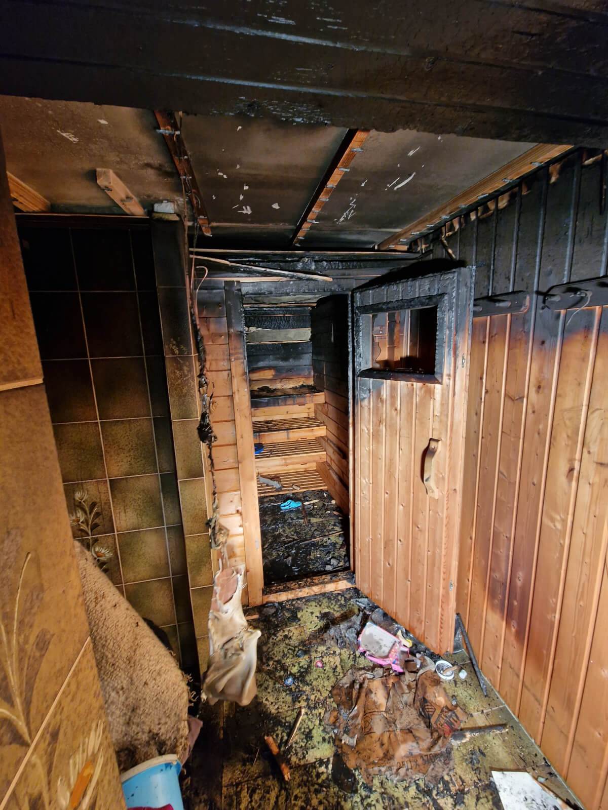 Teile der Deckenverkleidung mussten entfernt werden, um alle restlichen Glutnester sicher ablöschen zu können.