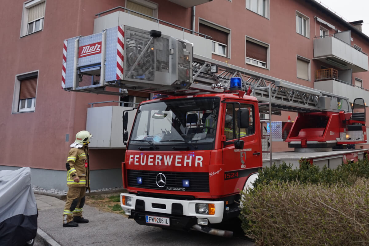 Montag früh wurde die Feuerwehr zu einer Person in Notlage in der Friedensstraße alarmiert. Hilfe schreie aus einer Wohnung machten Nachbarn aufmerksam, diese setzten die Retttungskette in Gang. Durch direkten Sprechkontakt durch die Wohnungstüre wurde der Person zugeredet, die Tür selbstständig zu öffnen. Parallel wurde die Drehleiter positioniert, um über ein geöffnetes Fenster zutritt zur Wohnung zu verschaffen. Schließlich konnte die Person die Tür aus eigenen Kräften öffnen. Somit konnte der Einsatz für die Feuerwehr beendet werden.