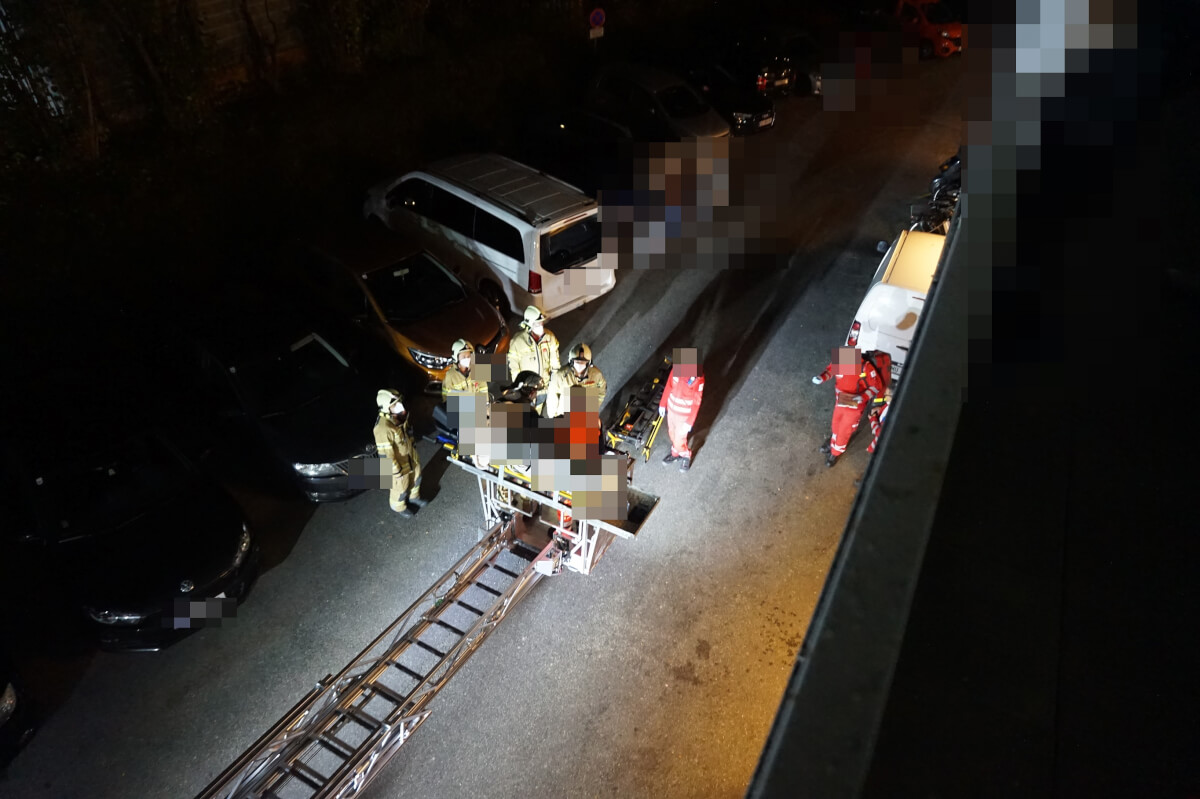 Gemeinsam mit der Polizei und dem Rettungsdienst wurde die FFV zu einer "Person in Notlage" alarmiert. Bei Eintreffen war der Rettungsdienst bereits in der Wohnung. Ein Nachbar konnte über den Balkon klettern und die Türe von innen öffnen. Während der Notarzt den Patienten medizinisch erst versorgte wurde durch die Feuerwehr Völs eine Drehleiterrettung vorbereitet.
