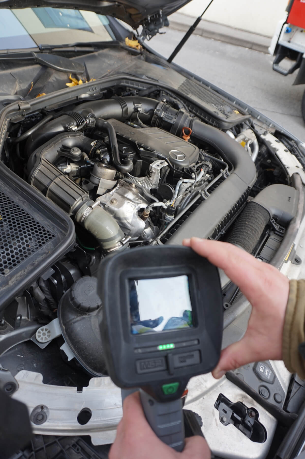 Am Samstagnachmittag wurde die Feuerwehr Völs zu einer Rauchentwicklung bei einem PKW im Motorraum alarmiert. Bereits auf Anfahrt wurde aufgrund der unklaren Situation schwerer Atemschutz ausgerüstet. Bei Eintreffen des Einsatzleiters konnte beim Fahrzeug keine Rauchentwicklung festgestellt werden. Im Motorraum wurde mittels Wärmebildkamera eine Temperatur von ca. 200°C gemessen. Ob es sich dabei um eine Überhitzung oder die normale Betriebstemperatur handelte, ist unklar. Jedenfalls wurde das Fahrzeug, nachdem es weiter abgekühlt ist, in eine leere Parkbucht geschoben und dem ÖAMTC übergeben.