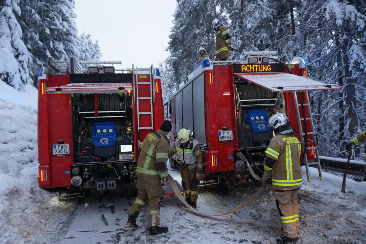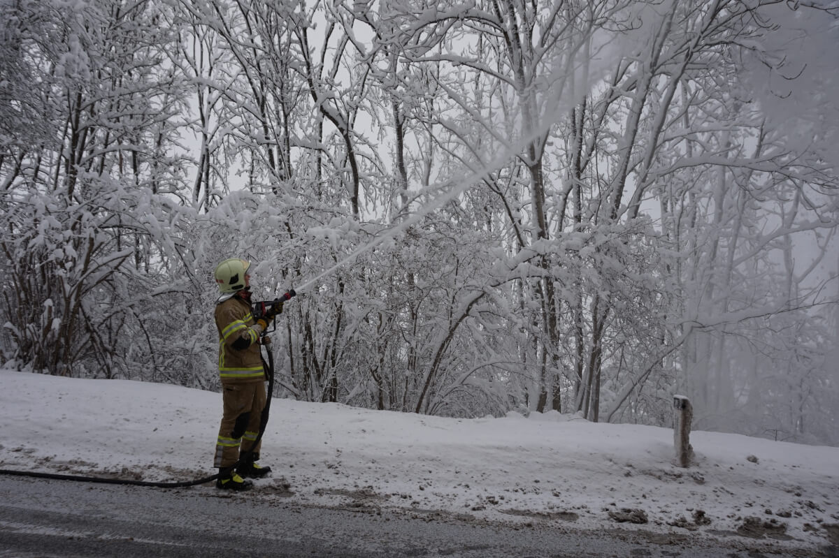 Am Sonntag Nachmittag wurde die Feuerwehr Völs gemeinsam mit der Feuerwehr Götzens zu einem technischen Einsatz auf der Götzner Straße alarmiert. Mehrere Bäume hingen durch die Schneelast in die Straße und gefährdeten somit den Verkehr. Eine Straßensperre wurde errichtet und mittels Einreishacken, Vorschlaghammer sowie Motorsäge die Bäume vom Schnee befreit. Zusätzlich wurde mit dem Hochdruck von zwei Tanklöschfahrzeugen der Schnee von den Bäumen gespritzt. Nach dem ein Schneepflug den restlich Schnee von der Straße entfernte, konnte die Sperre aufgehoben werden und die Feuerwehr Völs um 17:50 Uhr wieder einrücken.