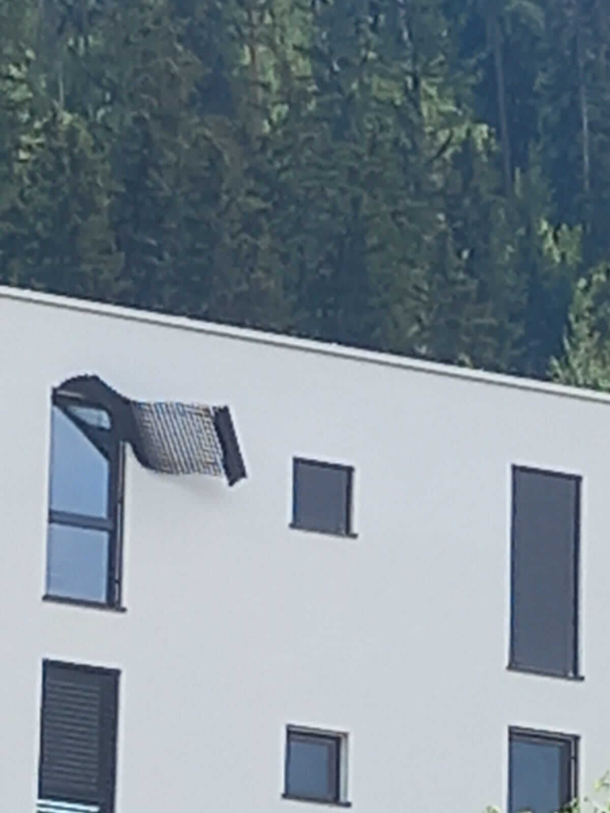 Durch den starken Wind gab die Verankerung einer Jalousie nach und drohte hinunterzufallen.