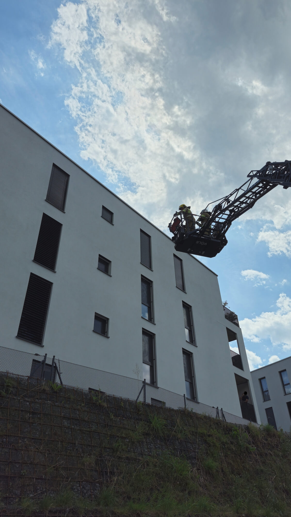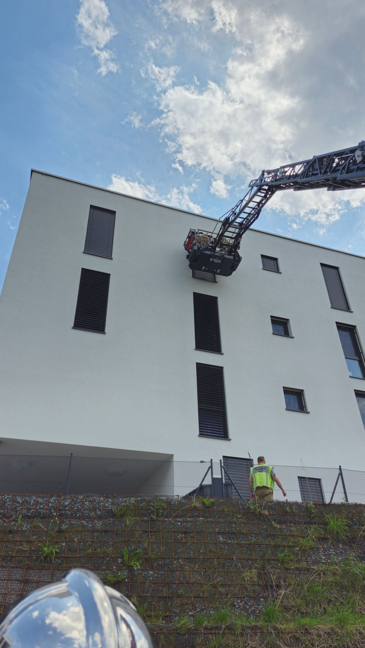 Die Feuerwehr Völs sicherte die Jalousie mit einem Draht, damit keine Gefahr mehr besteht.