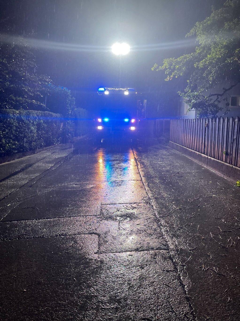 Einsatz 2 23:17 Uhr: Ein Aufstellpool in der Kranebitter Straße wurde durch das Unwetter beschädigt, weshalb der Pool mit 32 Tausend Litern Wasser kontrolliert abgelassen wurde.