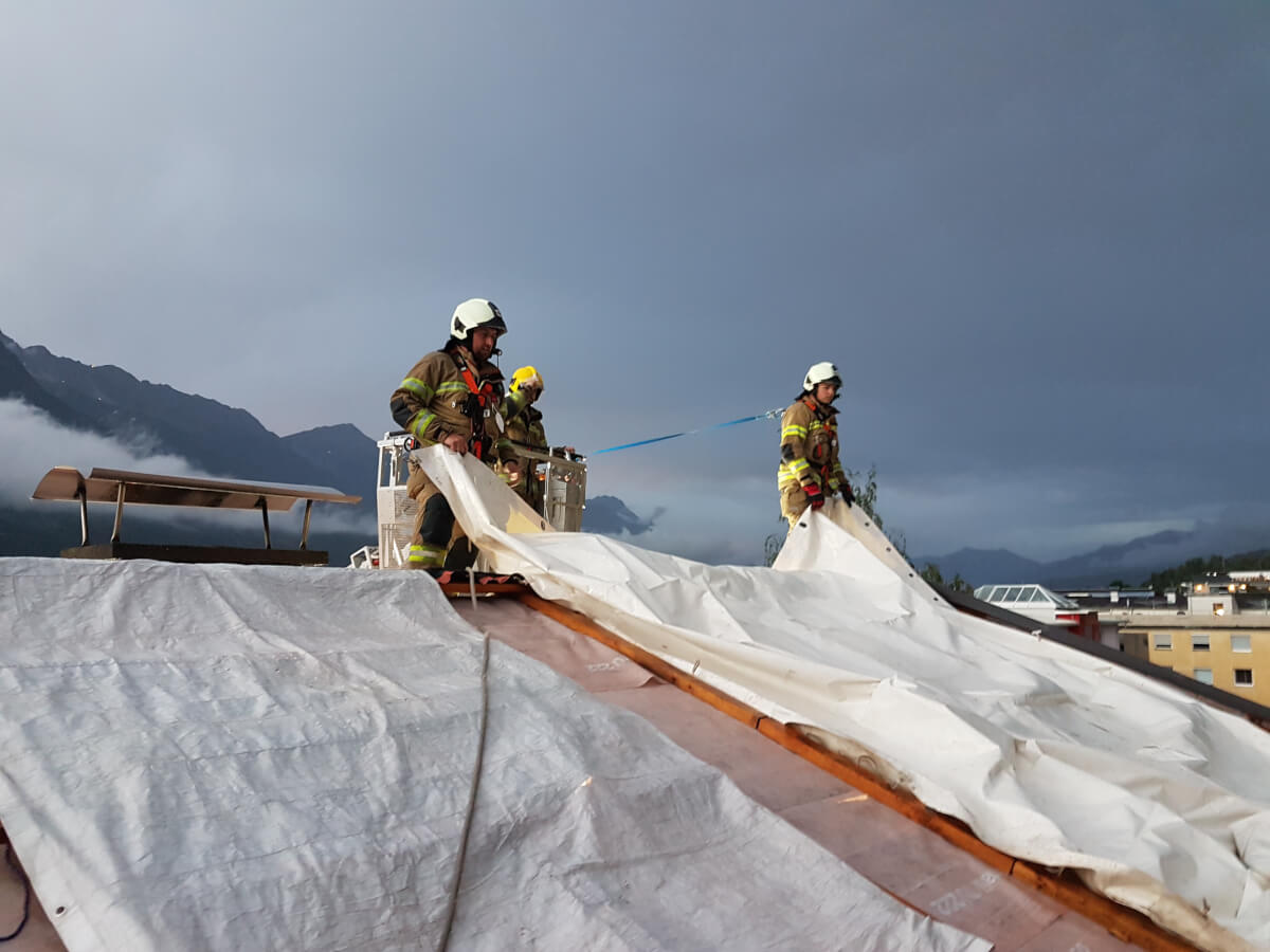 Wasserschaden Dach, Innsbrucker Straße 38, 20:59 UhrAufgrund von Umbauarbeiten kam es zu einem Wasserschaden im Dachboden über das Stiegenhaus bis in den Keller. Der Dachboden wurde vom Wasser und nassen Sägemehl befreit und das Dach mit Abdeckplanen und Kanthölzern provisorisch abgedichtet, um einen weiteren Wasserschaden zu verhindert.