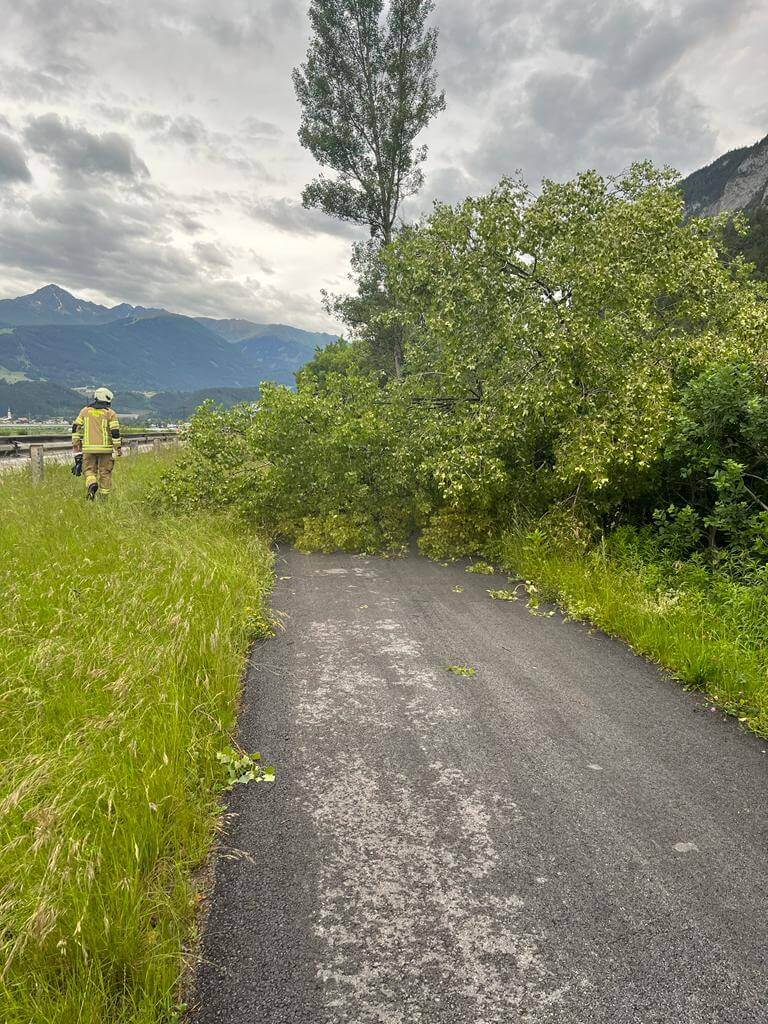 Am Pfingstsonntag wurde die Feuerwehr Völs zu mehreren Einsätzen aufgrund starker Windböen gerufen. Erste Einsatzmeldung waren Sicherungsarbeiten bei einem abgedeckten Hausdach, welche in Zusammenarbeit mit dem Hausmeister durchgeführt wurden. Weitere Einsätze waren die Entfernung von Bäumen und Ästen von Straßen und die Instandsetzung von Baustellenabsicherungen. Nach 1,5h waren die Einsatzszenarien abgearbeitet und die Feuerwehr Völs konnte wieder einrücken.