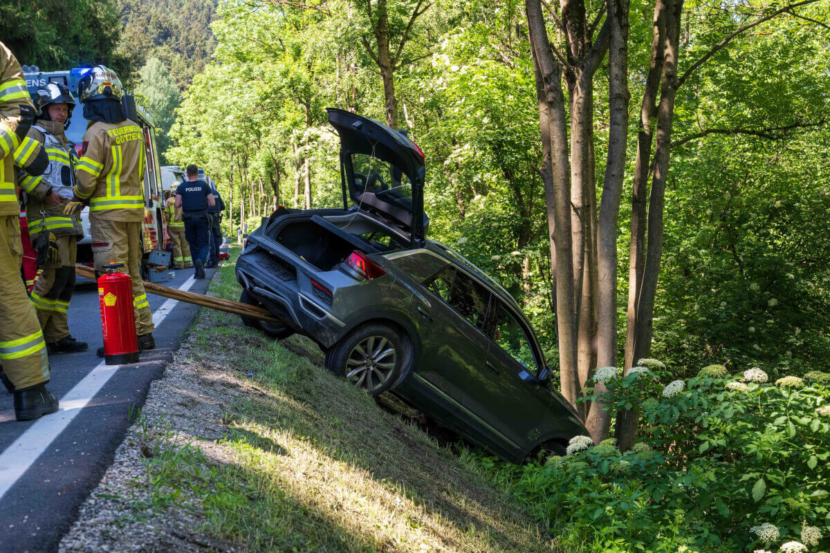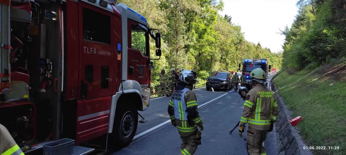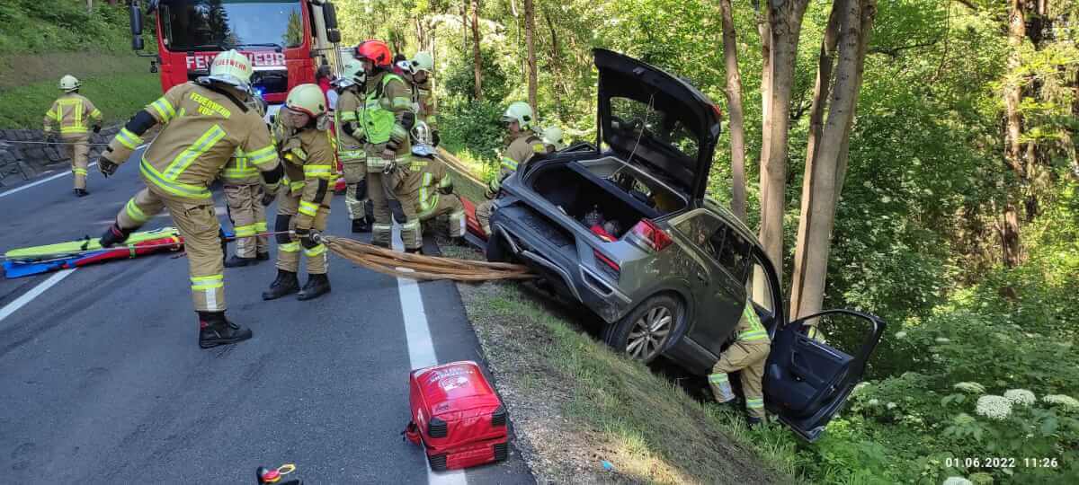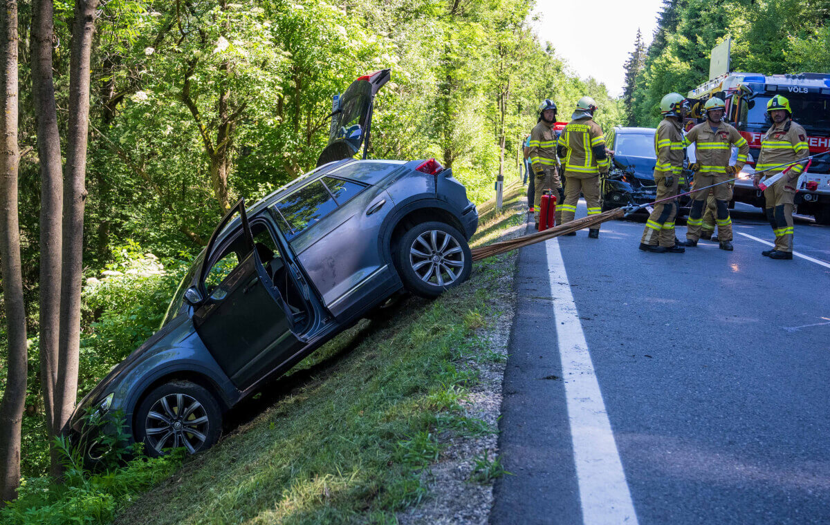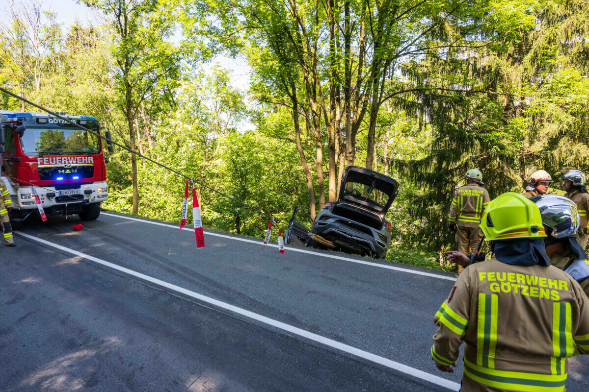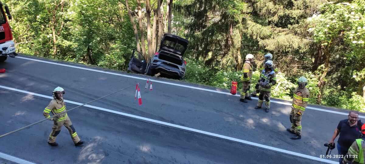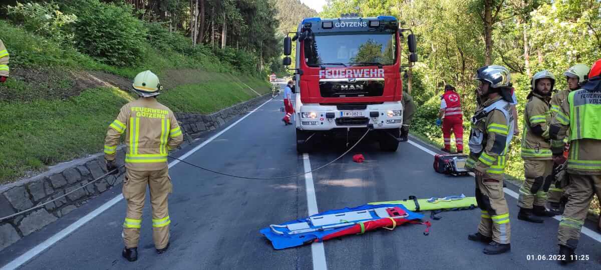 Am Mittwoch Vormittag wurde die Feuerwehr Völs zu einem Verkehrsunfall bzw. drohenden Absturz eines PKW´s auf die Götzner Landesstraße alarmiert. Zeitgleich wurde aufgrund des Alarmplanes auch die Feuerwehr Götzens mitalarmiert. Die beiden Feuerwehren trafen zeitgleich ein, wobei nach Ersterkundung durch den Einsatzleiter Völs eine Aufgabenverteilung durchgeführt wurde. Die Feuerwehr Götzens übernahm die Fahrzeugsicherung und -bergung und die Feuerwehr Völs baute den Brandschutz auf und führte die Personenrettung durch. Nach ca. 15 Minuten konnte die verletzte, zeitweise bewusstlose Person dem Rettungsdienst/Notarzt übergeben werden. Die restlichen Aufgaben bestanden darin, ausgelaufene Betriebsmittel zu binden bzw. die Totalsperre bis zum Eintreffen des Abschleppunternehmens aufrecht zu halten.