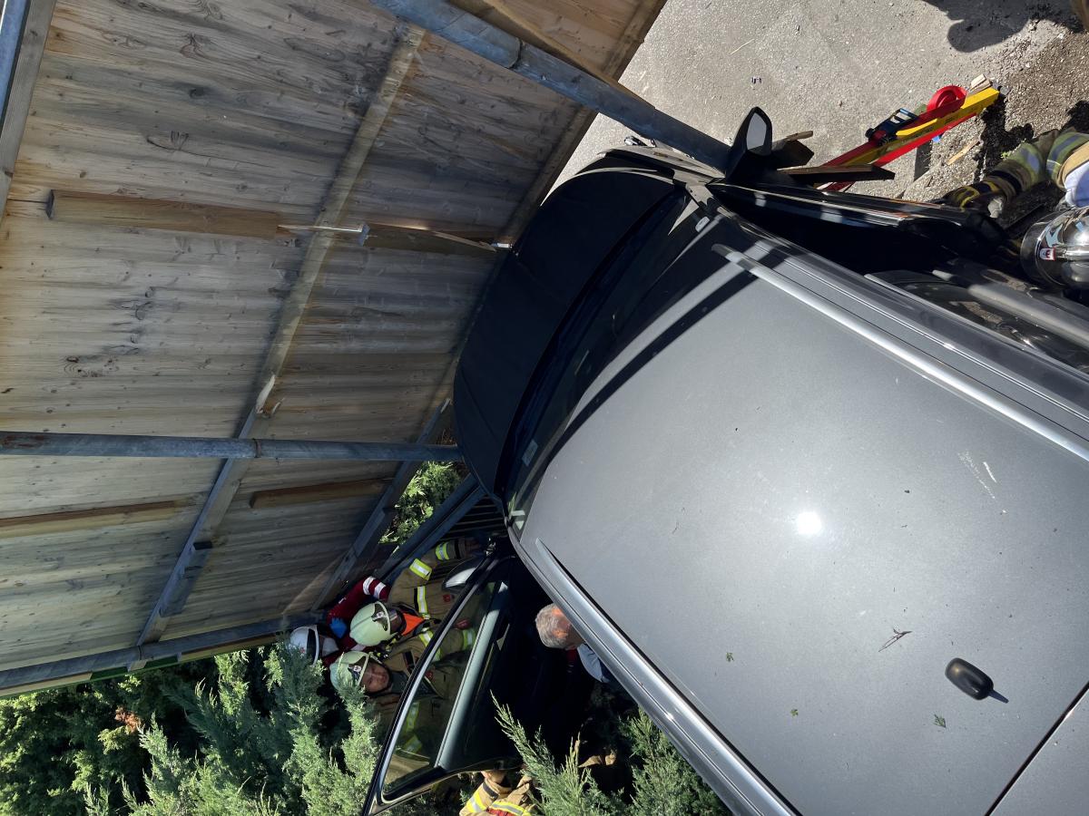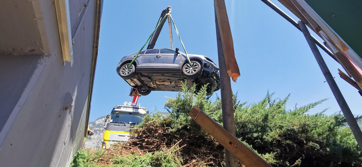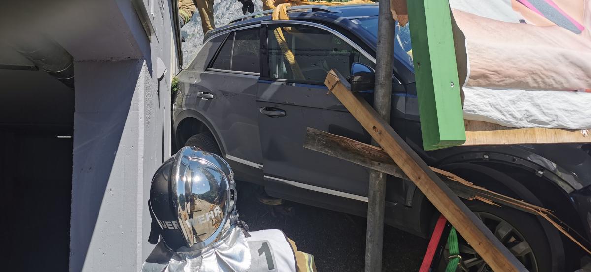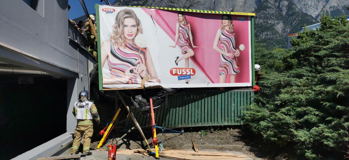 Am Dienstagnachmittag wurde die Feuerwehr Völs zu einem Verkehrsunfall am Gelände des Einkaufszentrums Cyta gerufen. Bei Eintreffen wurde festgestellt, dass ein PKW über steiles Gelände beim Abfahren von einer Parkdeckrampe abgestürzt war und sich eine Person noch im Fahrzeug befunden hat. Die Erstmaßnahmen waren die Fahrzeugstabilisierung und Patientenbetreuung in Form eines inneren Retters. In Zusammenarbeit mit der Rettung und dem Notarzt wurde die Person aus dem verunfallten Fahrzeug mittels KED-System (Rettungskorsett zur Stabilisierung der Wirbelsäule) und Spineboard gerettet. Weitere Maßnahmen waren die Absicherung der Unfallstelle und Beihilfe beim Abtransport des Fahrzeuges.