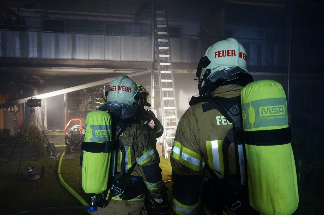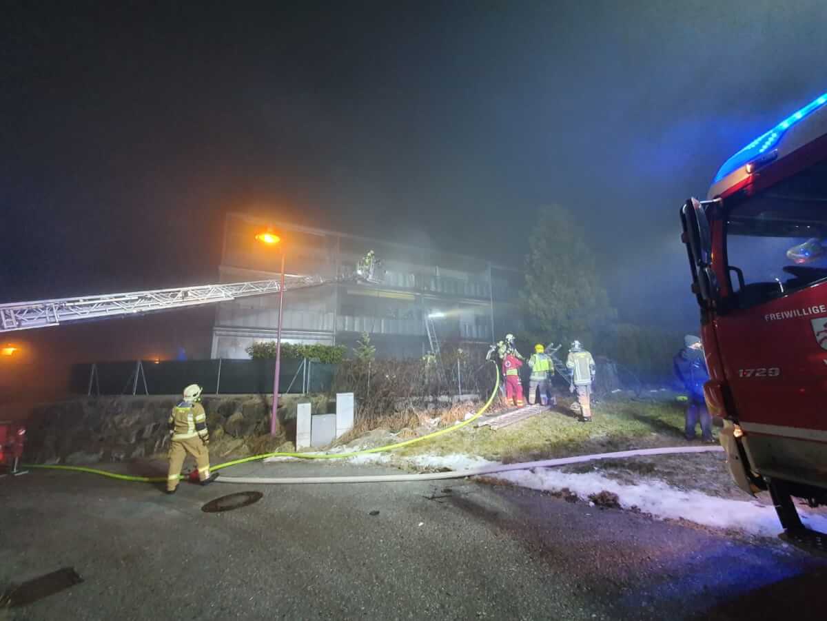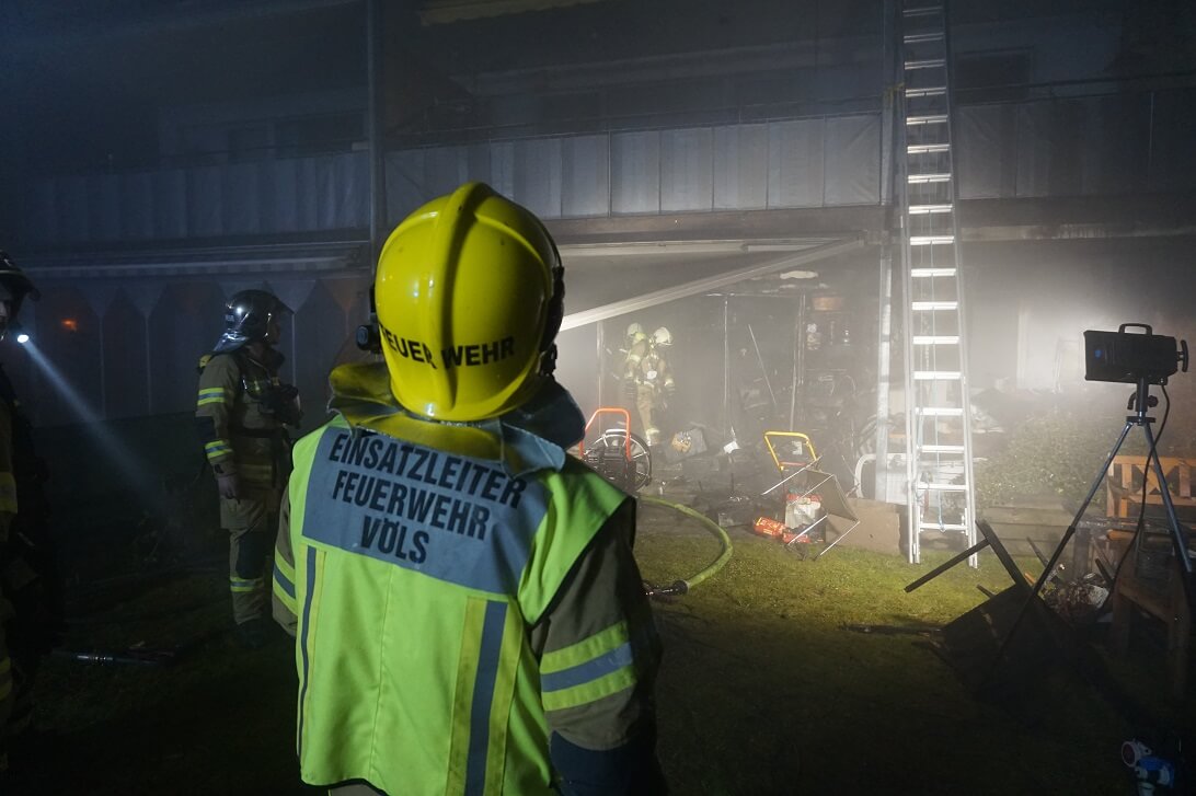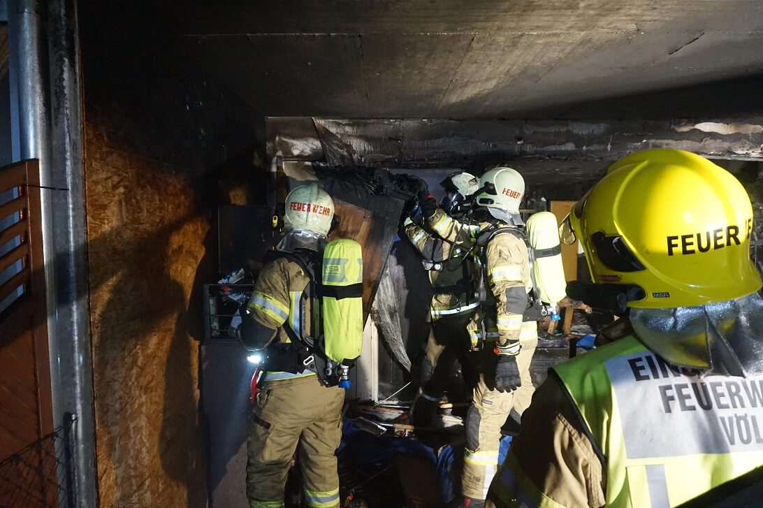 In der Nacht auf Samstag wurde die Feuerwehr Völs zu einem Brand auf einer Terrasse alarmiert. Bei Eintreffen waren die Scheiben der Wohnung bereits geborsten und der Brand hatte auf die betroffene Wohnung übergegriffen und drohte ebenso auf die darüberliegenden Einheiten überzuspringen. Mutige Ersthelfer und Nachbarn sowie angrenzende in der Nähe befindliche Feuerwehrkameraden hatten bereits mit ersten Löschmaßnahmen mit Handfeuerlöschern gestartet und konnten dadurch eine Brandausbreitung auf weiter Wohnungen verhindern. Der Bewohner befand sich in seinen Schlafzimmer und hatte vom Brandgeschehen nichts mitbekommen. Die Ersthelfer versuchten durch Klopfen und Klingeln an Fenster und Türen den Bewohner zu wecken, dieser konnte noch in letzter Minute gerettet werden.