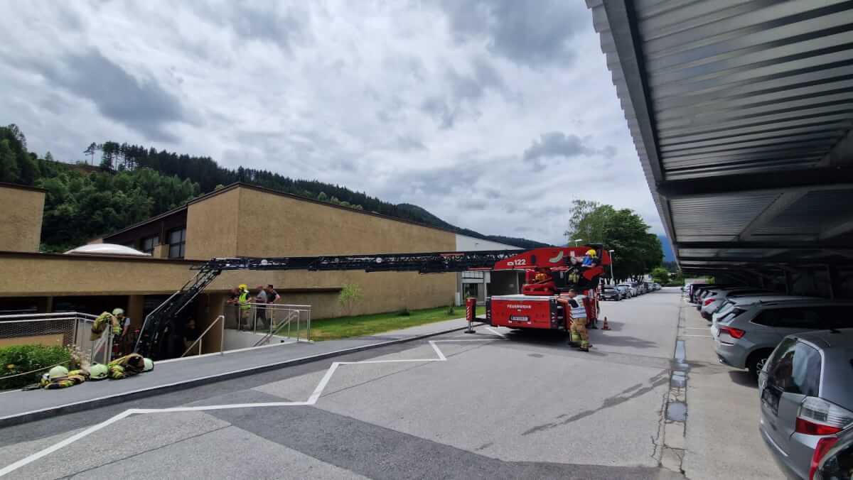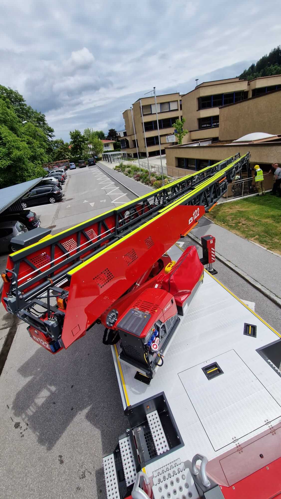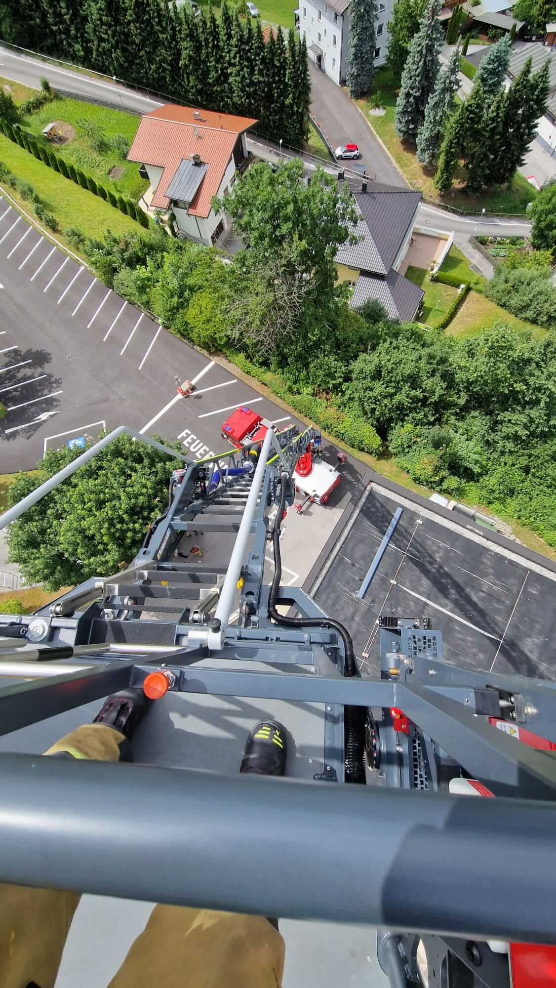 Danach ging es an die Praxis mit unserer neuen Drehleiter und es wurden mehrere Objekte im Ortsgebiet angefahren und verschiedene Szenarien beübt.