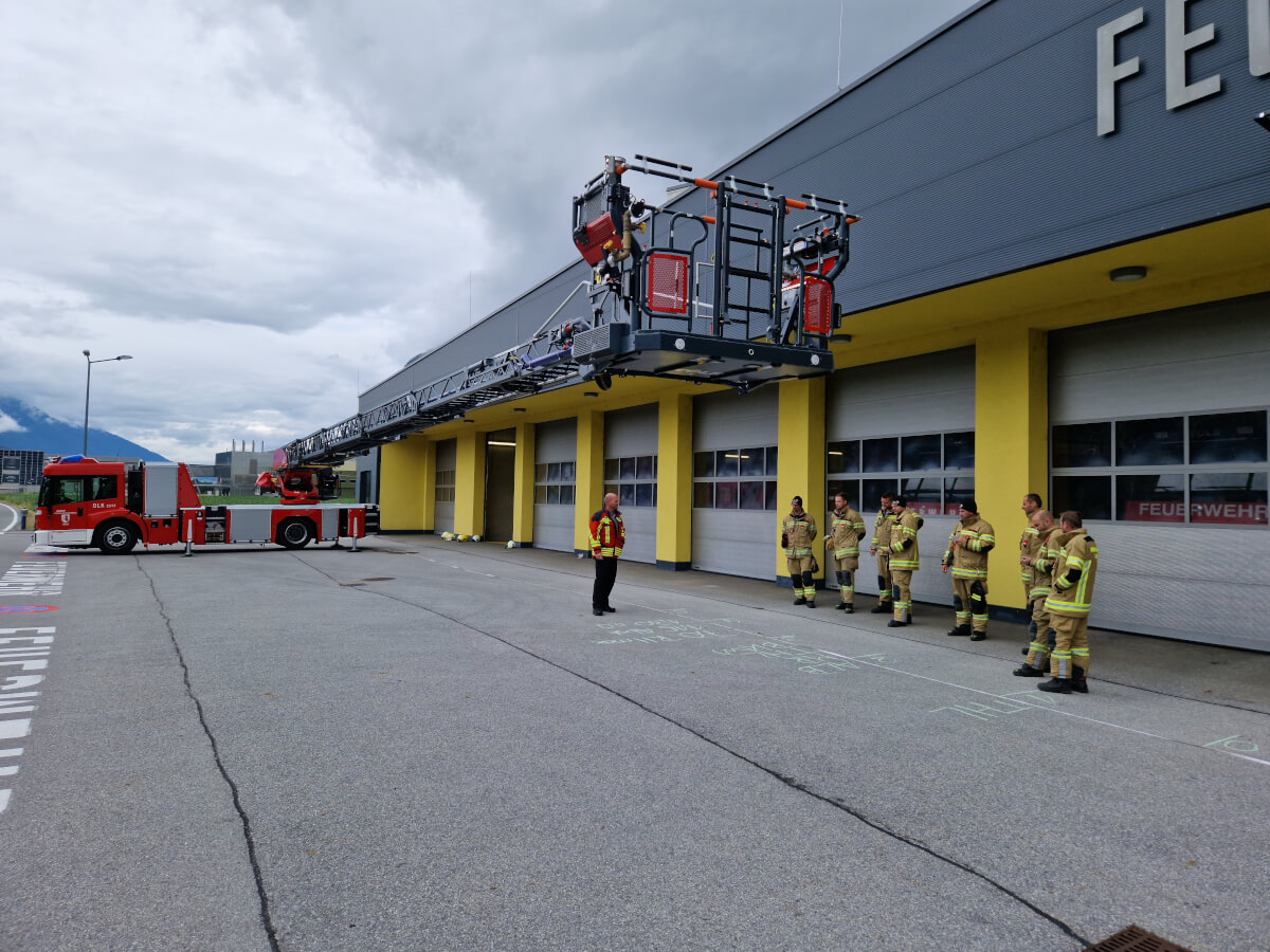 9 Drehleitermaschinisten der FF Völs ein Übungstag mit DREHLEITER.INFO am Programm.