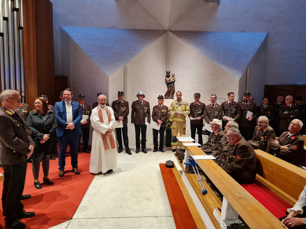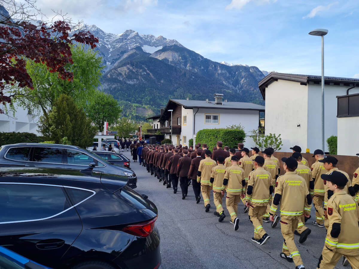 Am 06.05.2023 feierte die Freiwillige Feuerwehr Völs ihren Schutzpatron den Hl. Florian. Nach dem gemeinsamen Einmarsch mit der Musikkappelle Völs zur Emmauskirche zelebrierte Pfarrer Christoph die Messe. Hervorgehoben wurde sowohl in der Predigt als auch im Anschluss der Messe bei den Ansprachen der Ehrengäste, vor allem die Freiwilligkeit und die Zivilcourage der KameradInnen der Freiwilligen Feuerwehr Völs. Bürgermeister Peter Lobenwein sprach seinen Dank dafür aus – zu jeder Tages- und Nachtzeit einsatzbereit zu sein und sicherte der Feuerwehr Völs bestmögliche finanzielle Unterstützung zu, um neben einer gut ausgebildeten Mannschaft auch die bestmöglichen Einsatzgeräte zur Verfügung stellen zu können. Kommandant HBI Herbert Strickner jun. bedankte sich bei seiner Mannschaft für die Bereitschaft zur Ausbildung und die vorbildliche Einsatzbereitschaft – vor allem auch zur Tageszeit, wo sich ein Großteil der Mannschaft arbeitsbedingt nicht in der Gemeinde aufhält.