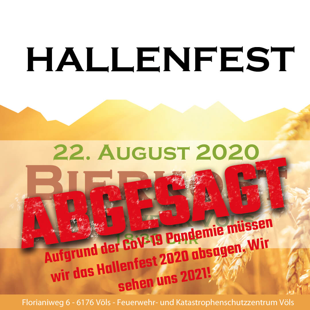 Hallenfest und Völs Läuft 2020 aufgrund der CoV-19 Pandemie ABGESAGT! Leider müssen wir mitteilen, dass die beiden Veranstaltungen im August aufgrund der aktuellen Lage abgesagt werden müssen. Wir bitten um Verständnis und freuen uns schon auf ein Fest 2021!