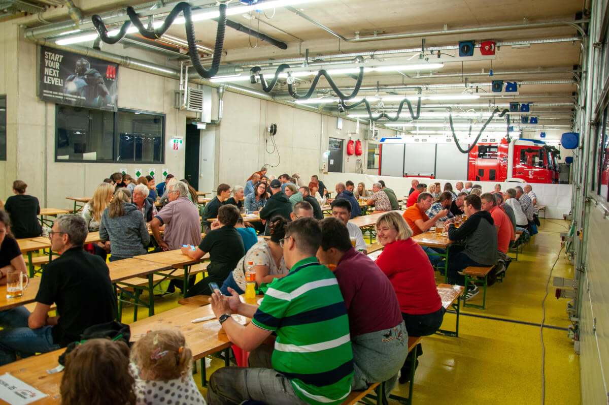 Spät Abends begann anschließend das traditionelle Hallenfest. An 2 Pfiffbar´s, der Fahrzeughalle und in unserem Disco Zelt wurden die Gäste kulinarisch bestens versorgt und konnten den Abend ordentlich Feiern.