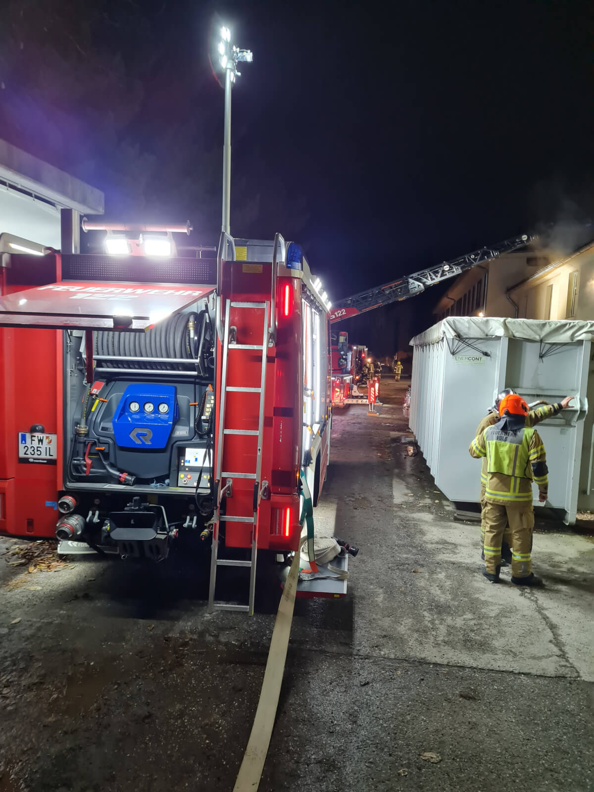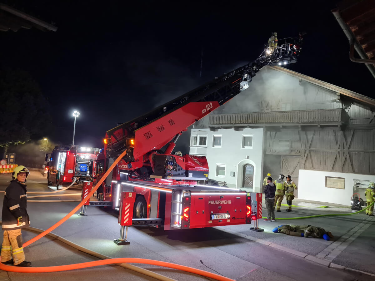 Bei der Tischlerei Norer durften wir einen Wohnungsbrand mit mehreren vermissten Personen simulieren. Unter Einsatz von mehreren Atemschutztrupps wurden Personen aus dem verrauchten Bereich gerettet sowie über die Drehleiter vom Dach gebracht.