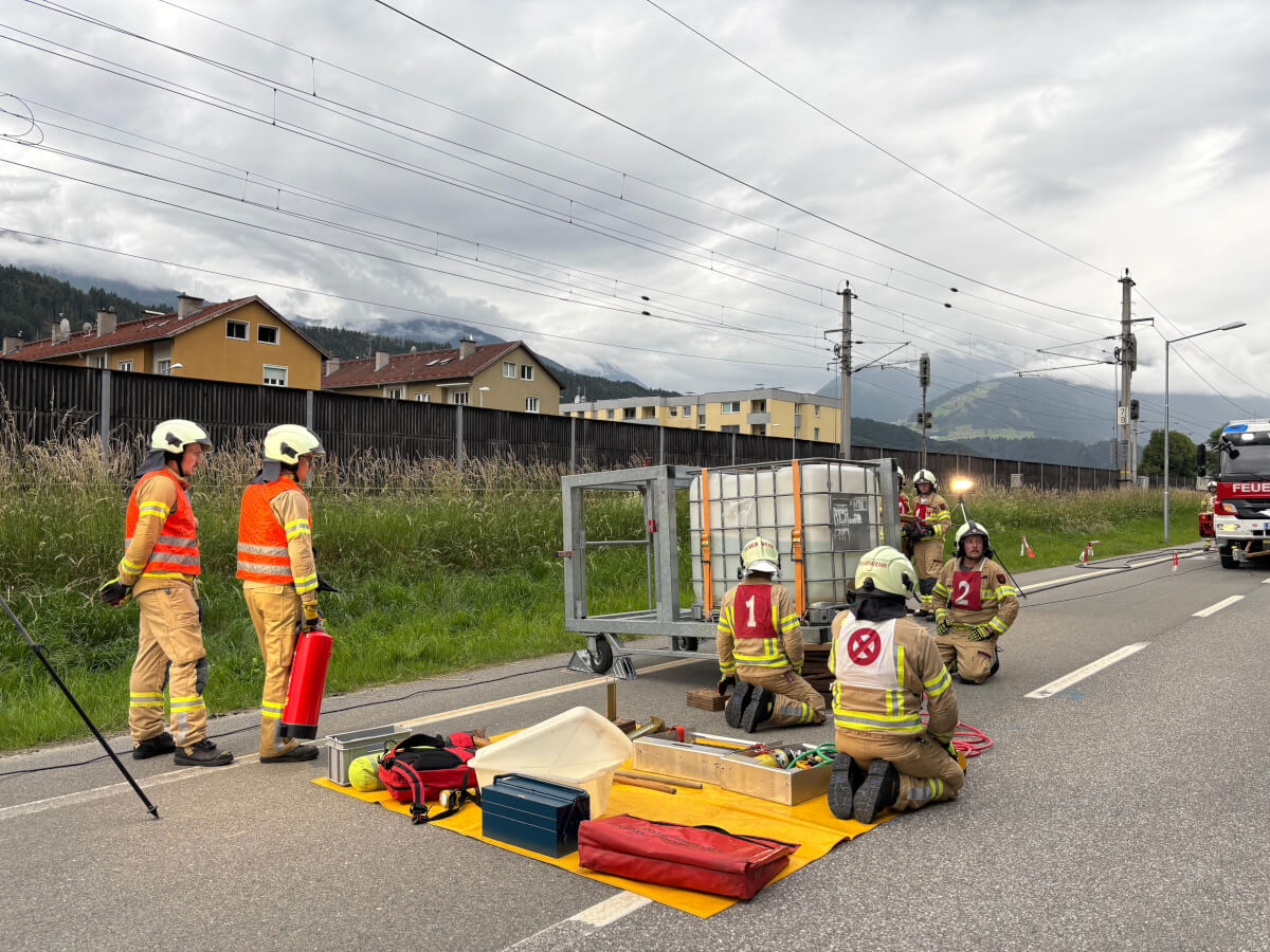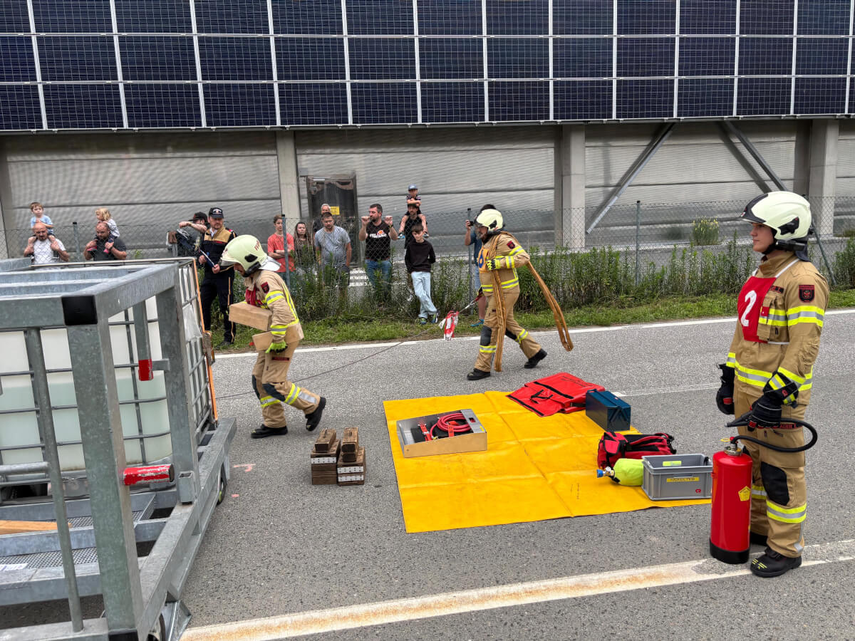 Geprüft wurden unter anderem das Absichern der Einsatzstelle, das richtige Ausleuchten, der Aufbau des Brandschutzes sowie das strukturierte Vorgehen mit dem pneumatischen Rettungsgerät am Unfallfahrzeug.