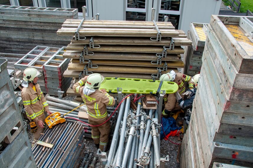 Nach einem gemeinsamen Frühstück und der Einteilung in die jeweiligen Gruppen konnte der Übungstag um 9 Uhr gestartet werden. Am Vormittag standen technische Übungen wie zum Beispiel „Personenrettung von Turmdrehkran“ oder „Verkehrsunfall mit eingeklemmten Personen“ auf dem Programm. Nach der Mittagspause mussten Brand-Übungen von den Einsatzmannschaften abgearbeitet werden. „Brand in Tiefgarage“ oder „Wohnungsbrand“ waren die Szenarien.