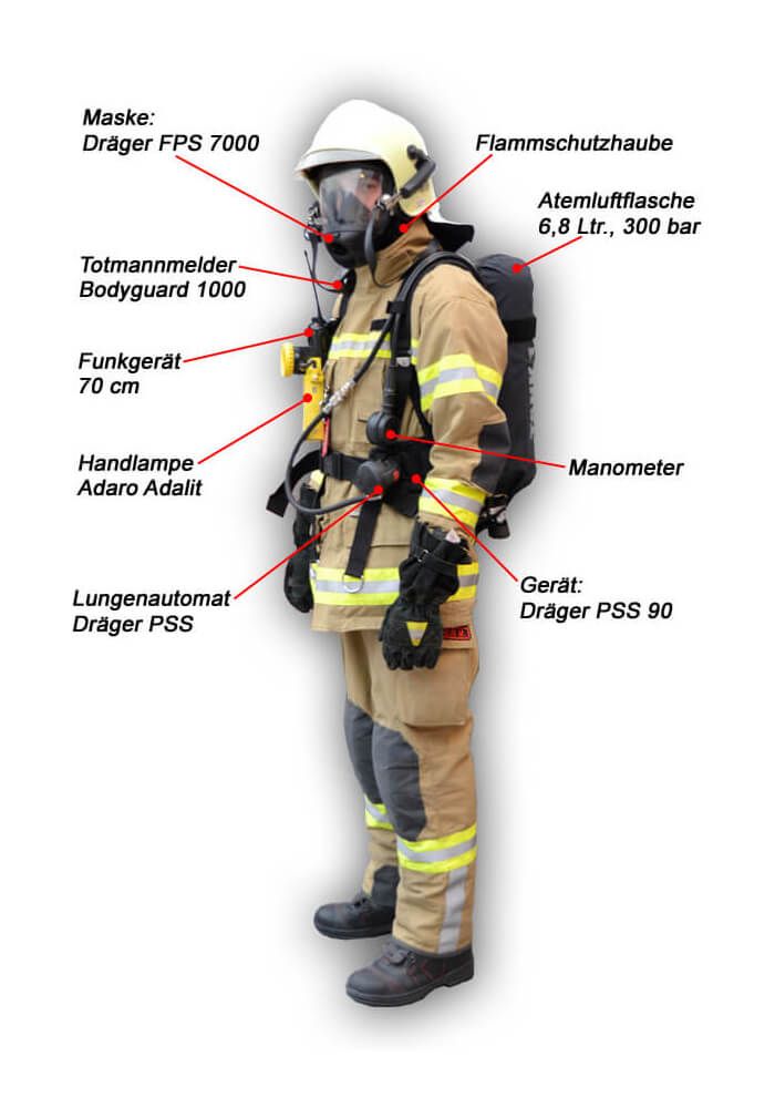 Der Begriff Atemschutz ist der Teil der persönlichen Schutzausrüstung, der den Träger vor allen schädlichen Stoffen oder Partikeln schützt, welche über Mund oder Nase aufgenommen werden können. Haupteinsatzgebiet von Atemschutzgeräten ist bei der Brandbekämpfung in Gebäuden und ebenso bei Bränden im Freien mit Entwicklung schädlicher Dämpfe und Rauchgase. Unsere Atemschutzgeräte sind umluftunabhängig, d.h. sie können auch zum Arbeiten in Räumen verwendet werden, in welchen nicht genügend Sauerstoff oder andere Gase vorhanden sind.