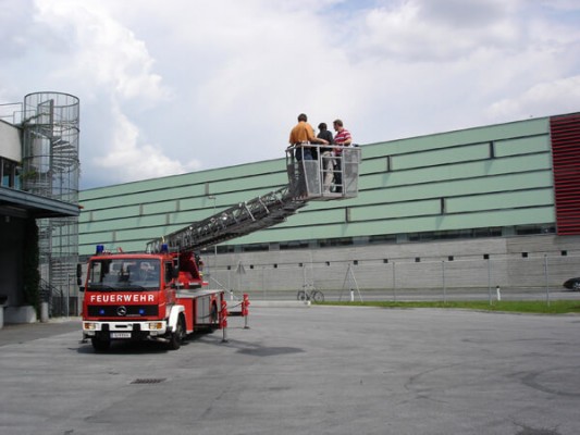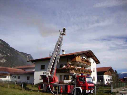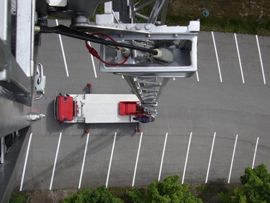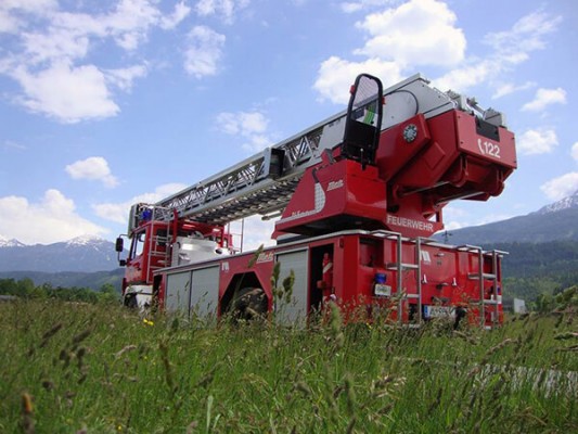 Die Drehleiter ermöglicht die Rettung von Personen und Brandbekämpfung aus großen Höhen. Mittels Leiterkorb können Personen schnell und sicher gerettet oder Einsatzpersonal in Höhen von bis zu 30 Meter befördert werden.